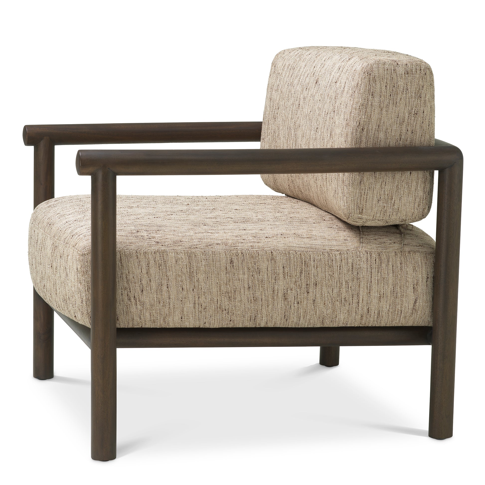 Fåtölj Ombria från Eichholtz lyfter interiören med sin ram i mörkt mocha mahognyträ och klädsel i Beckett Beige. De dämpade tonerna och det taktila tyget skapar en lugn och sofistikerad närvaro, medan den eleganta silhuetten utstrålar diskret lyx. En perfekt balans mellan harmoni, komfort och tidlös elegans för exklusiva miljöer