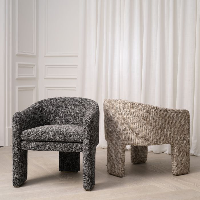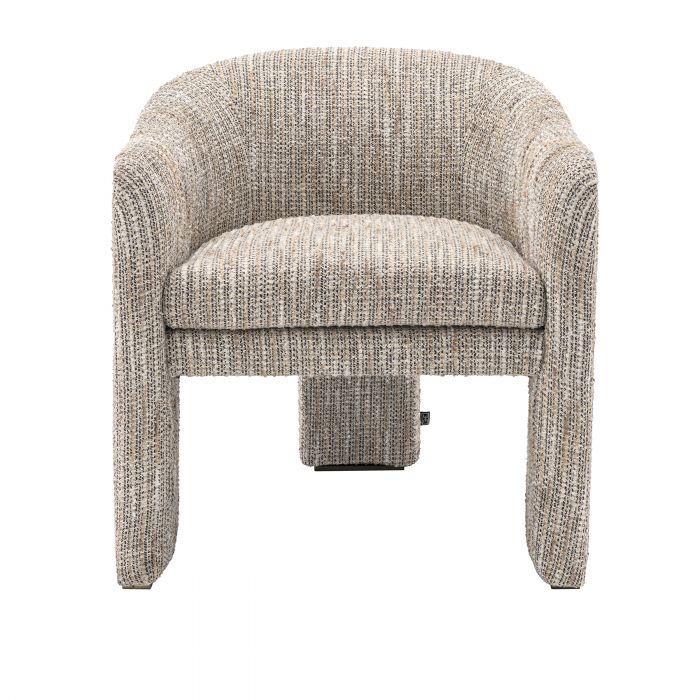 Fåtölj Pebbles sticker ut genom sin extraordinära design och är en förtjusande inredningsdetalj perfekt för alla rum i modern eller retrostil. Den är helt från topp till tå klädd i klädseln Mademoiselle Beige och har en badkarsformad sittdel och tre breda, stabila ben som längst ner avslutas elegant med en fot i borstad mässingsfinish.