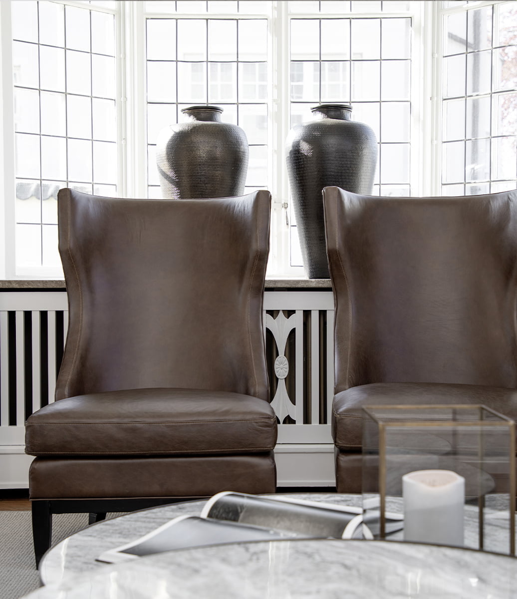Reed skinnfålöljär en klassisk skinnfåtölj med hög komfort. Med sin höga och utmärkande rygg passar Reed in i många olika stilar och miljöer.