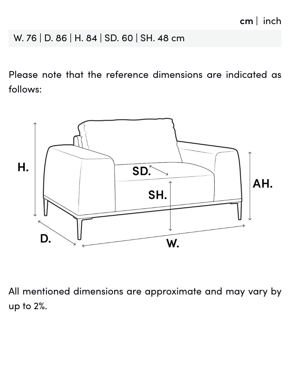 Måttspecifikationer: SD. 60|SH. 48 cm