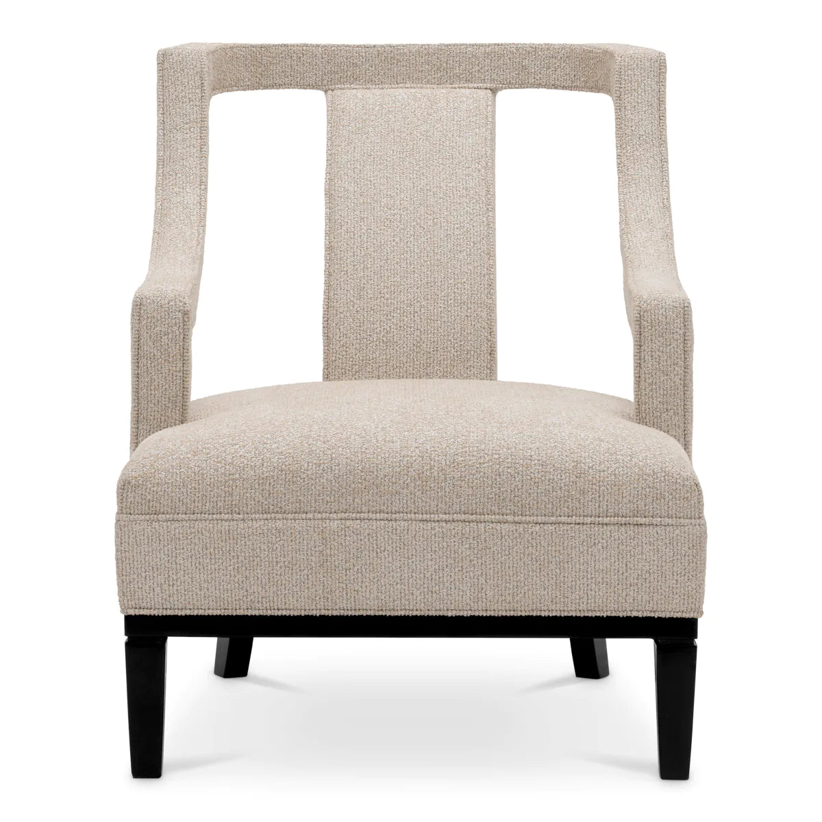 Med klädseln Palmer beige och svarta ben med detaljer i mässing utstrålar denna tolkning av museets fåtölj en sofistikerad elegans. Ge ditt hem historisk charm och tidlös skönhet med denna utsökta möbel, som ingår i Met x Eichholtz Metropolitan Collection.