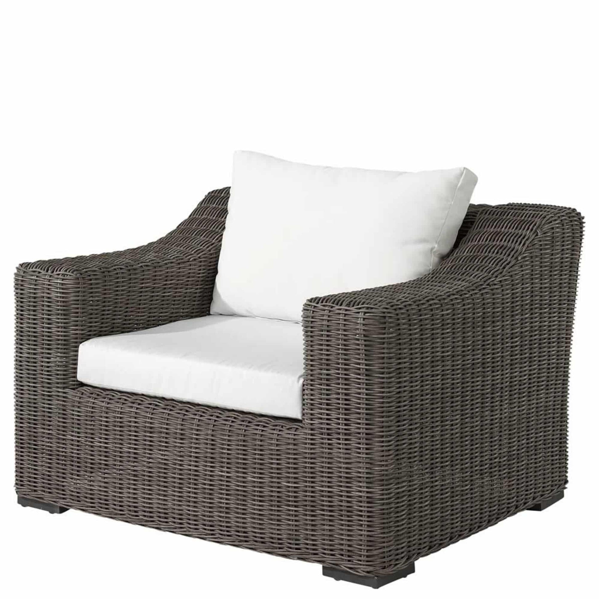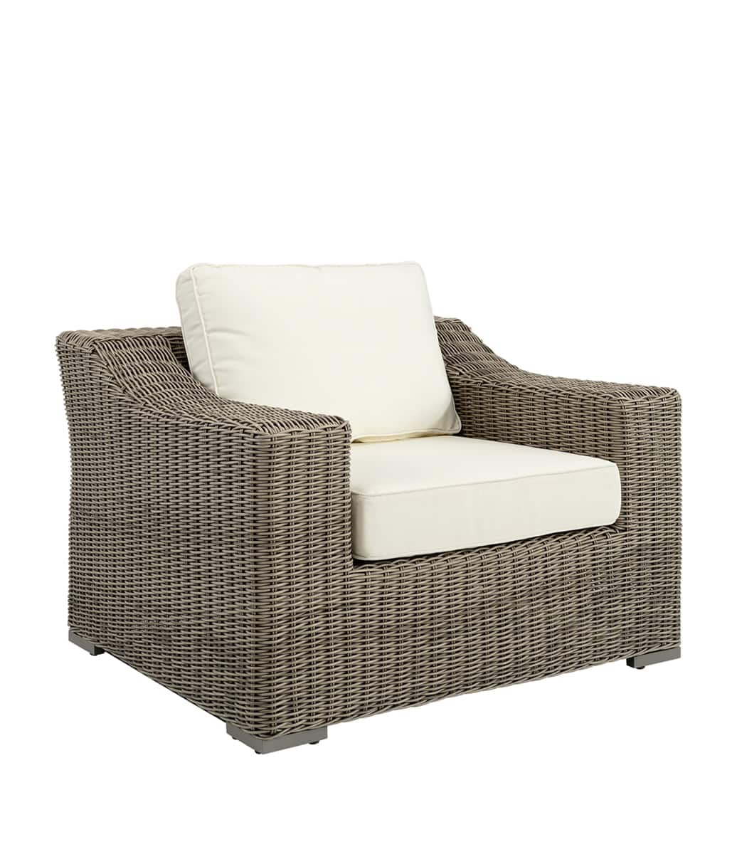 Snygg och rejäl, väl tilltagen fåtölj med en stomme i aluminium och högkvalitativ konstrotting. Dynorna har avtagbar klädsel och fåtöljen ger en härlig känsla av lyx och elegans. En fåtölj som håller i många år. Finns med tillhörande soffa.