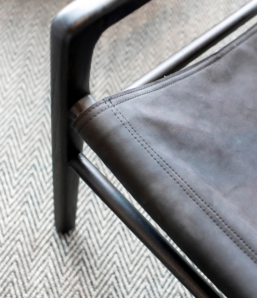 Svart läder med antingen svart teak eller brunt minditrä (Mindi kallas ofta som asiens svar på cederträ).