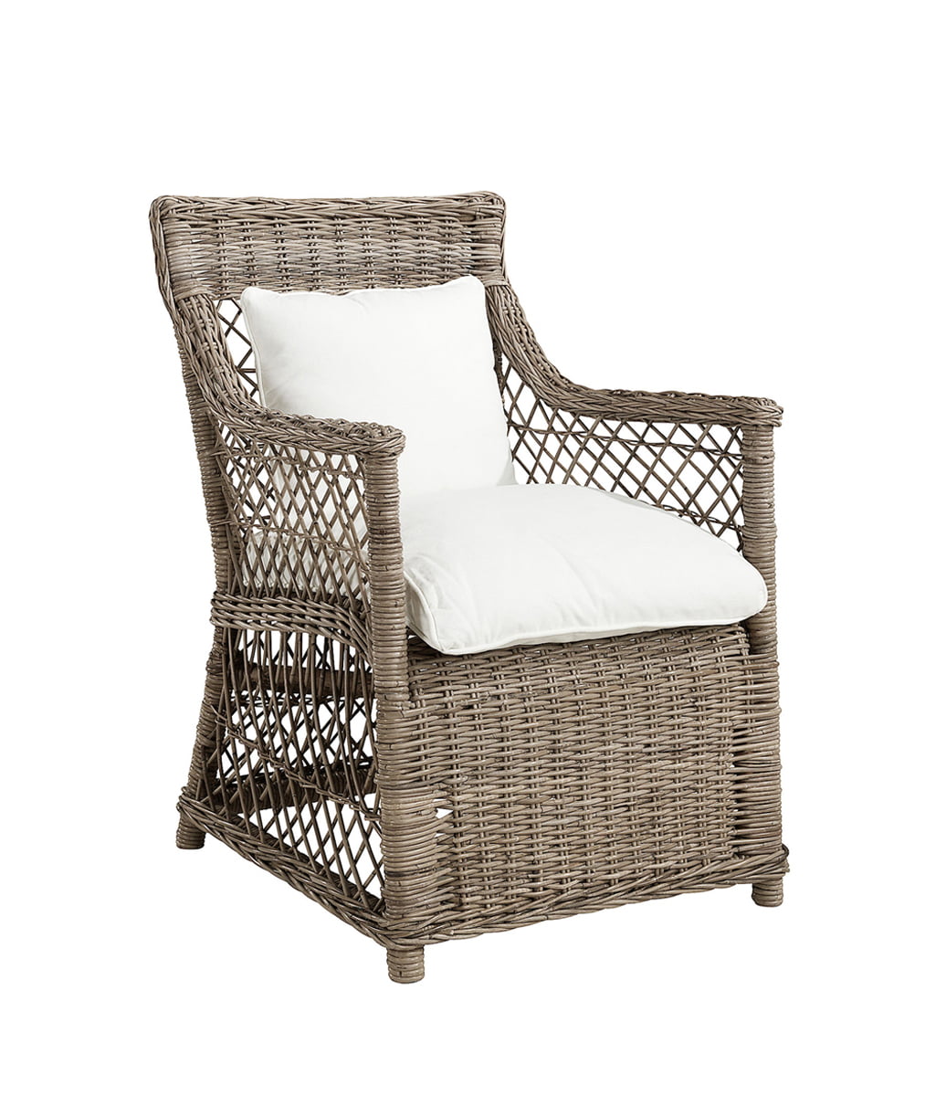 Spain är en elegant fåtölj i rotting från Artwood som förenar tidlös design med hög kvalitet. Med sina armstöd och naturliga material blir denna stol en perfekt detalj i både moderna och klassiska miljöer. För att anpassa stolen till din stil kan du välja till en dyna i valfri färg eller använda den utan dyna för en ren och minimalistisk look. Rottingens hållbara konstruktion garanterar både komfort och lång livslängd, vilket gör stolen idealisk för såväl matplatsen som det inglasade uterummet. Dyna i off-white inkluderad.