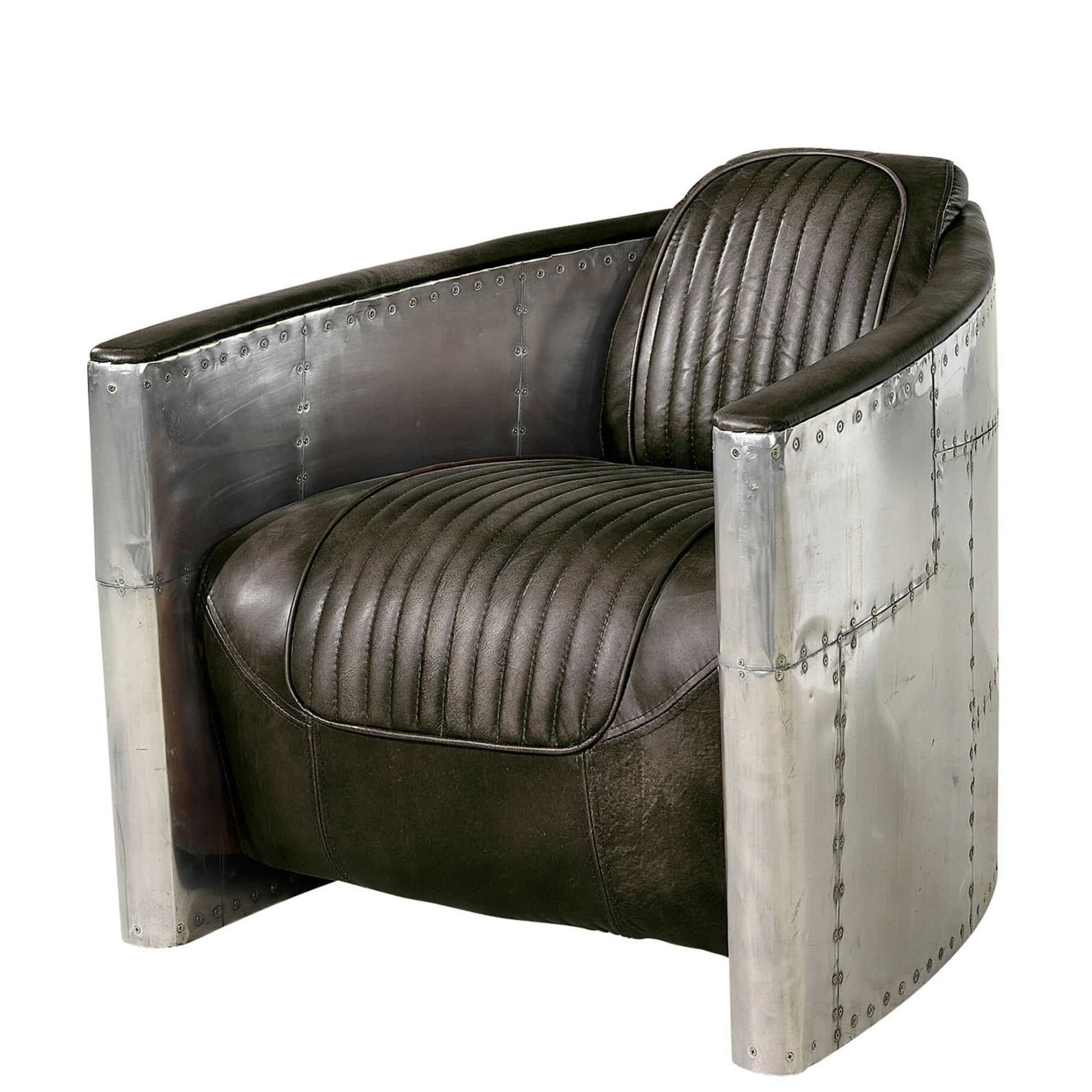 En otroligt häftig och väldesignad fåtölj i finaste läder och aluminium. Denna spektakulära fåtölj har tagit inspiration från jaktflygplanet Grumman F14 Tomcat och bjuder på spännande former och spektakulär design. Ribbat läder och spännande formgivning gör denna fåtölj till ett mycket omtyckt inslag i inredningen.
