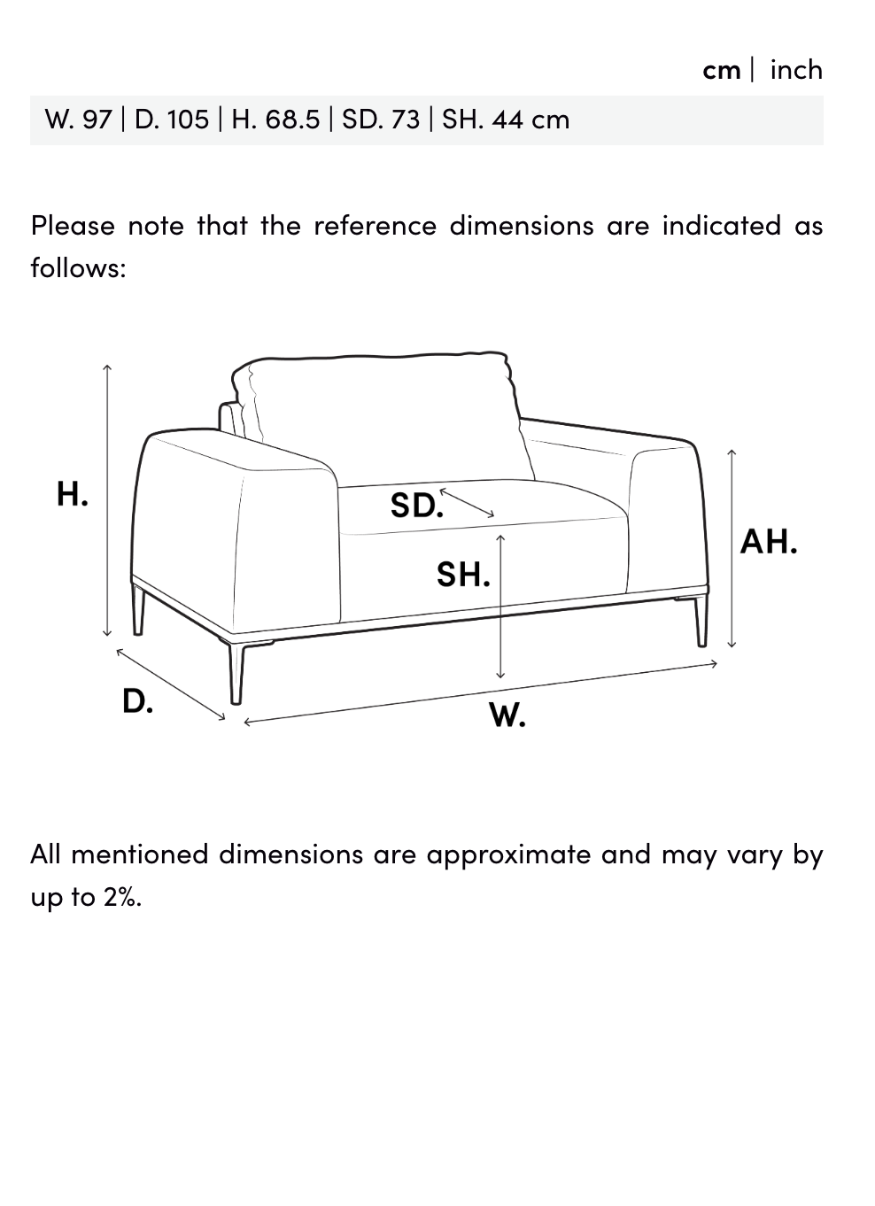 Måttspecifikationer: SD. 73|SH. 44 cm