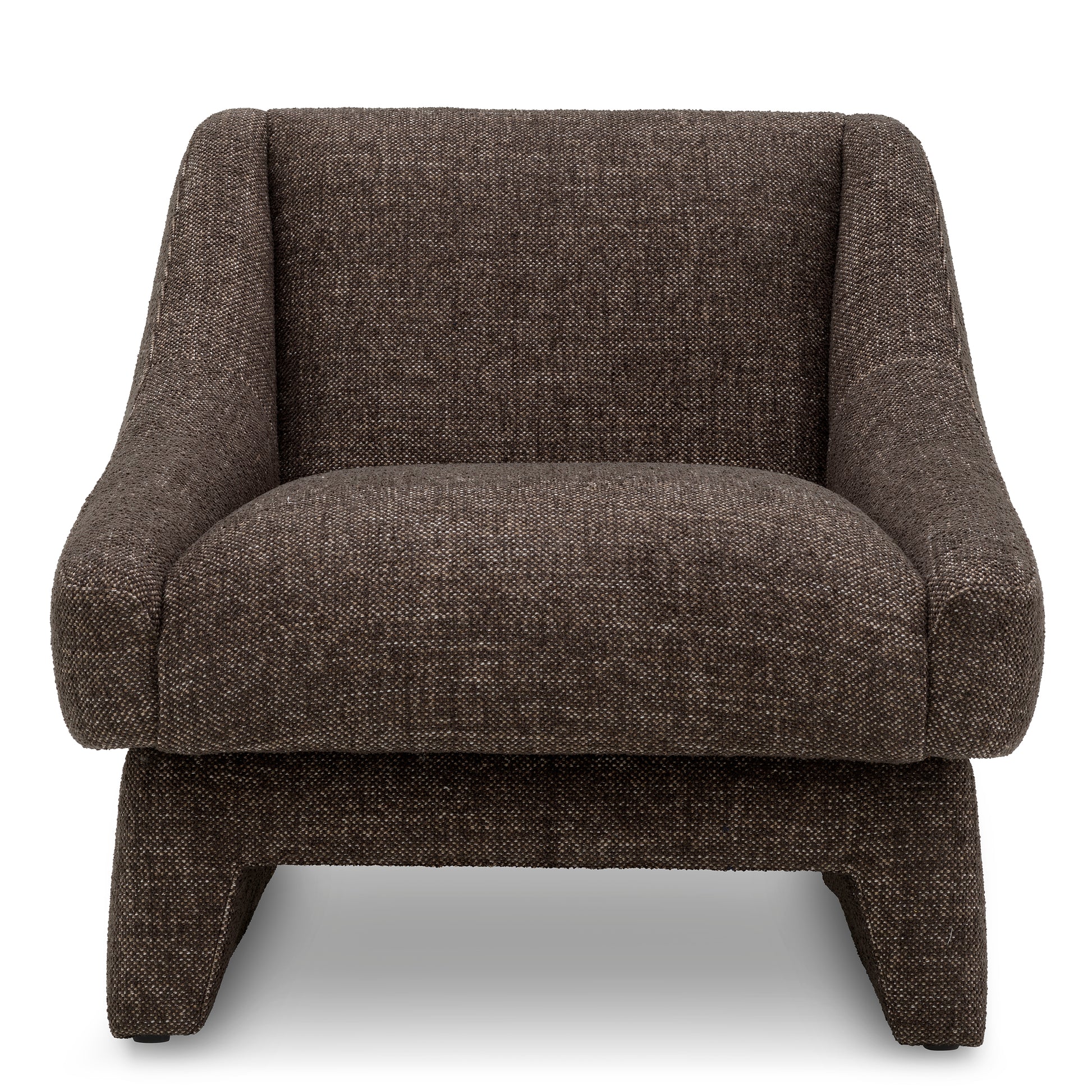 Fåtölj Valore från Eichholtz är klädd i exklusivt Renato-tyg i en varm, djup brun nyans som utstrålar elegans. De slanka konturerna och den mjukt stoppade sitsen bjuder in till hög komfort och gör fåtöljen till ett lyxigt tillskott för den som uppskattar förfinade texturer och tidlös tonal skönhet i exklusiva sittmöbler.