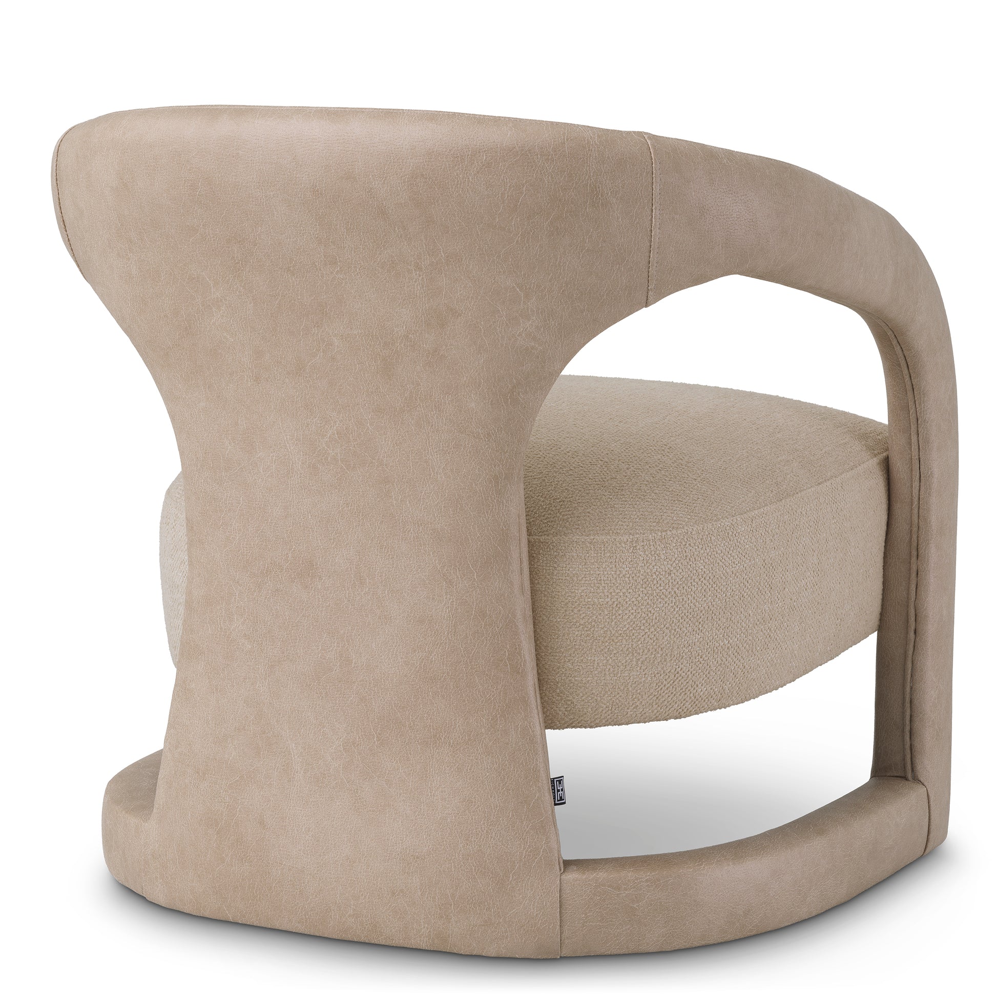 Fåtölj Voletta från Eichholtz utstrålar lugn elegans med sin kombination av beige Valente-konstläder och mjukt Renato Ecru-tyg. De subtila tonerna och de lyxiga materialen skapar en sofistikerad harmoni av struktur och form. Med sin eleganta silhuett och diskreta finess förhöjer Voletta varje exklusiv interiör med tidlös stil och raffinerad komfort.