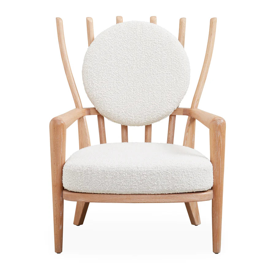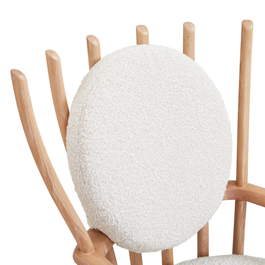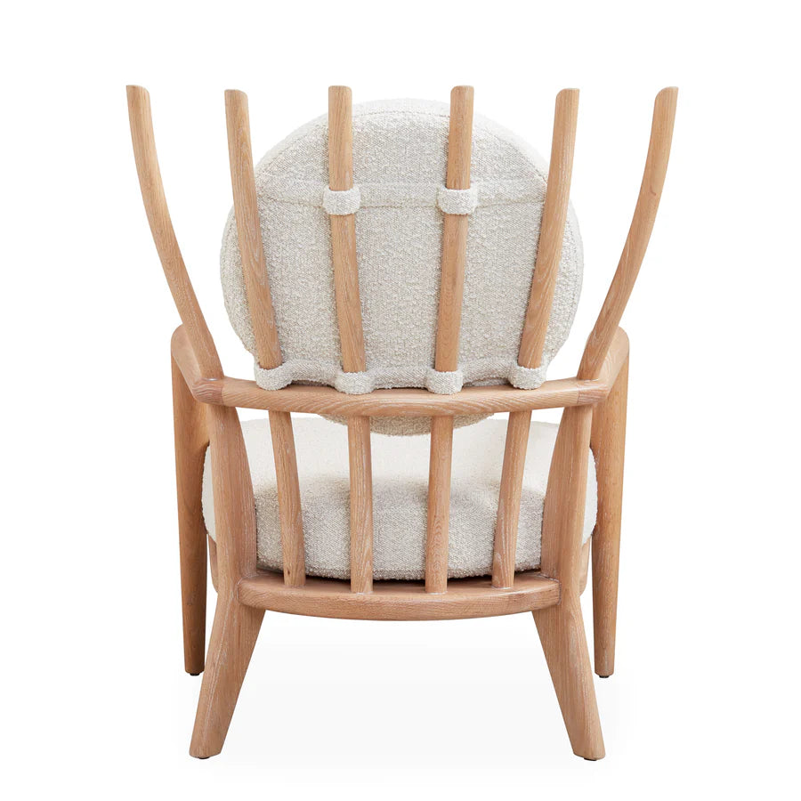 Den klassiska Windsor-stolen, i en ny fri tolkning. Adlers avskalade version har en stomme i massiv svarvad ek, en perfekt placerad ryggkudde och en extra tjock, bekväm sits klädd i oatmeal bouclé.