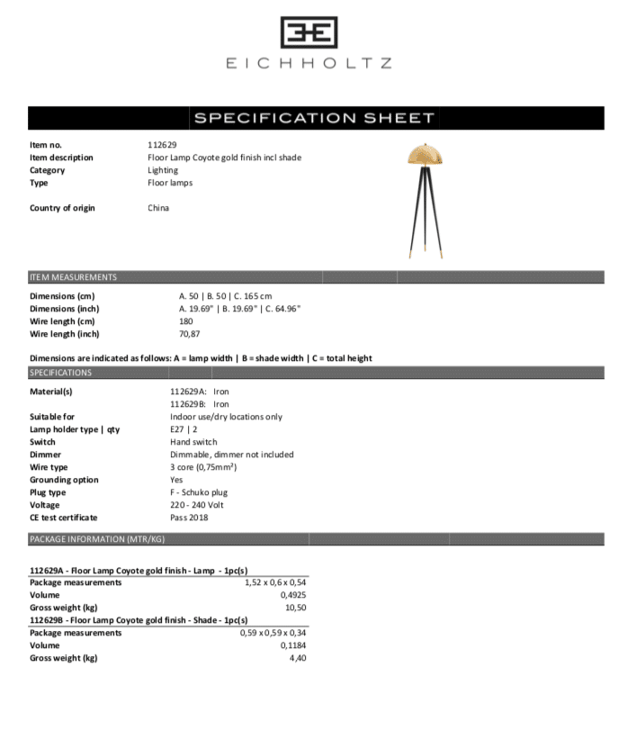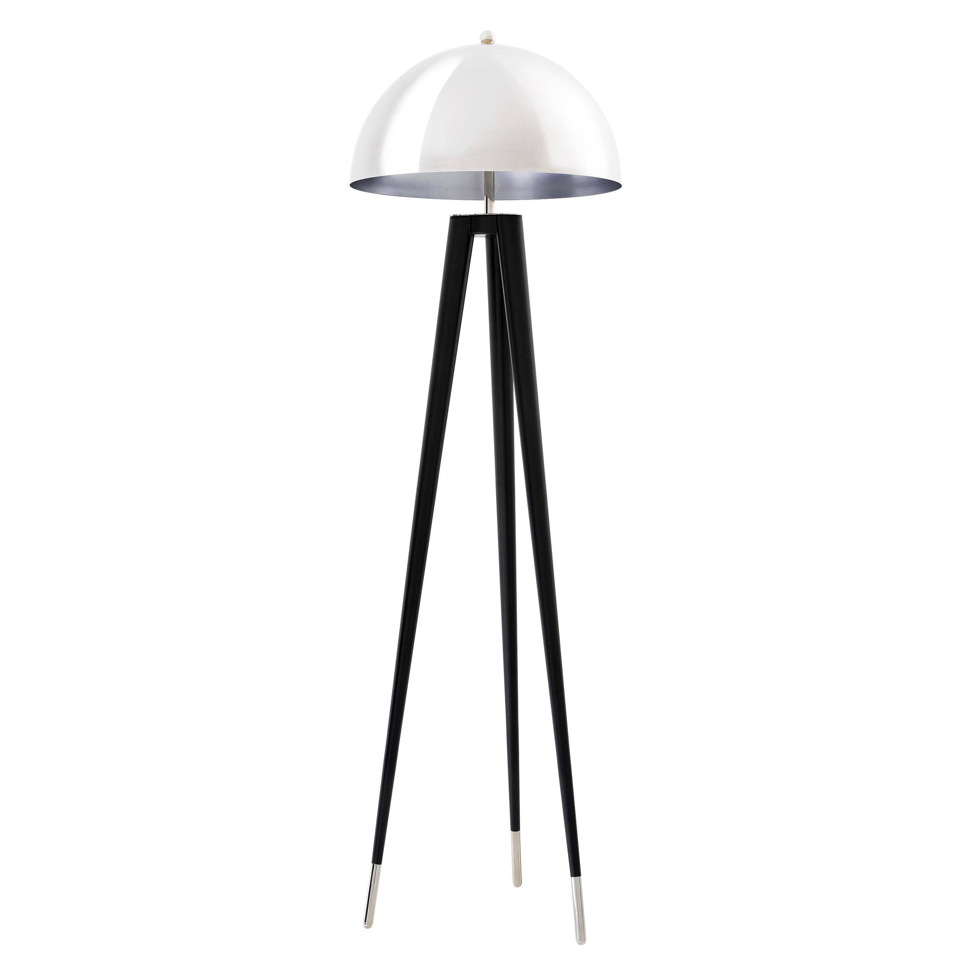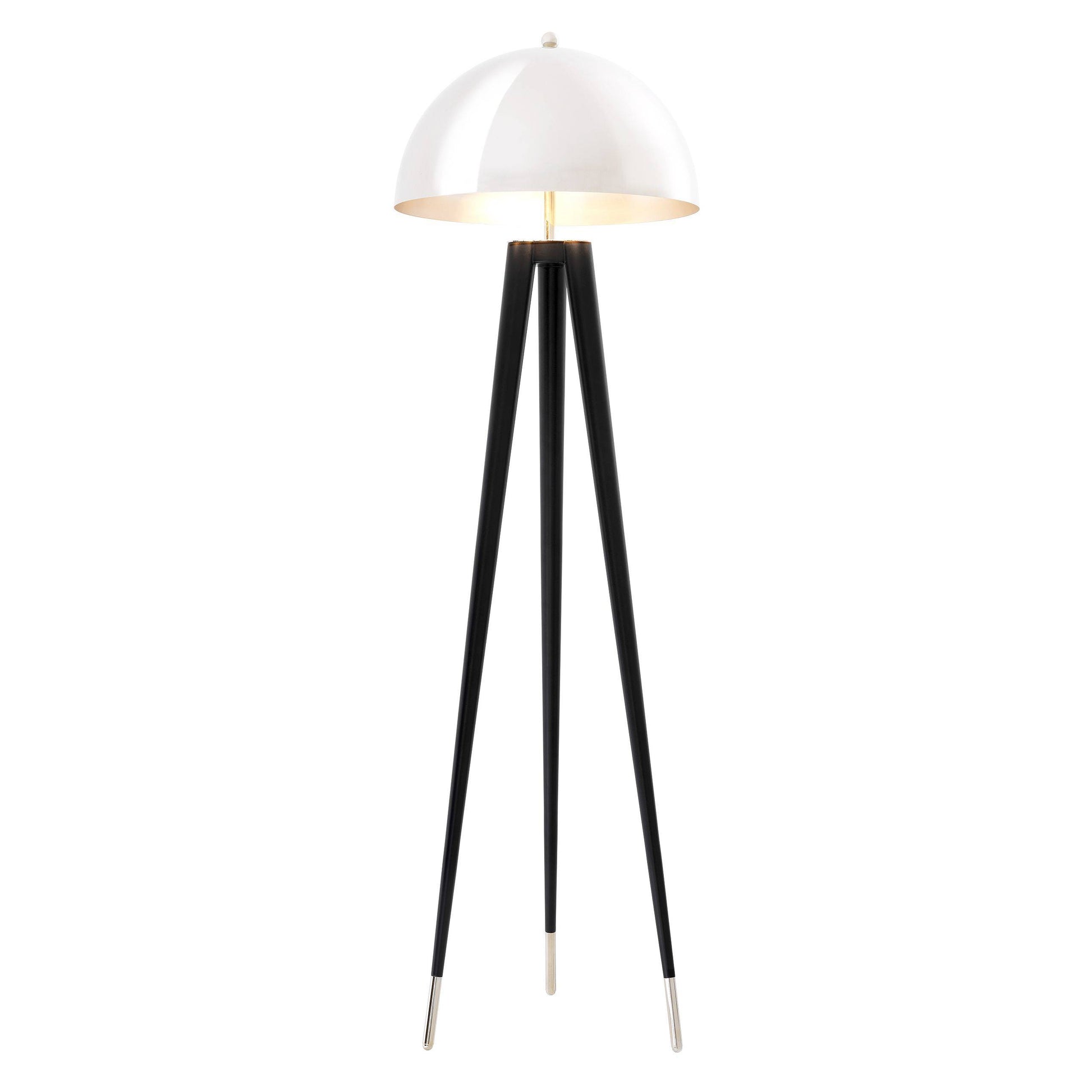Floor Lamp Coyote från Eichholtz bjuder på guld- eller nickelfinish och svart i perfekt harmoni. Denna moderna stativgolvlampa har en kupolformad lampskärm och svarta avsmalnande ben, och ger din inredning ett elegant utseende.