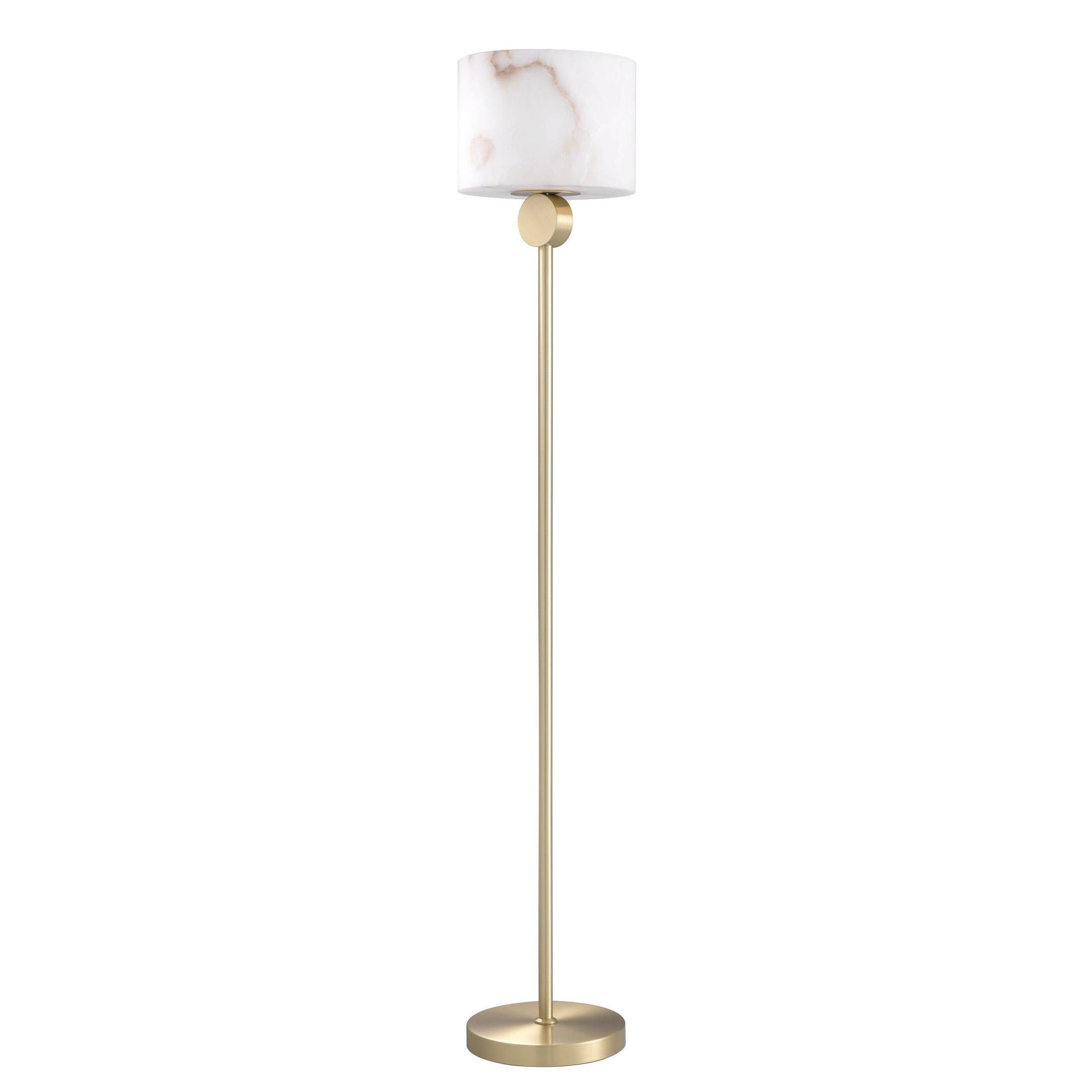 Golvlampa Etruscan från Eichholtz. Med denna designlampa är det lätt att skapa en trevlig och exklusiv atmosfär i ditt vardagsrum eller sovrum genom att placera den i ett hörn eller bredvid en soffa. Med sin brons- eller mässingsfärgade armatur och runda skärm i äkta alabastersten som på ett mycket härligt sätt släpper igenom ljuset ger denna vackra golvlampa din inredning en romantisk touch som bara är oemotståndlig. Kombineras med fördel tillsammans med matchande tak- och bordslampa.