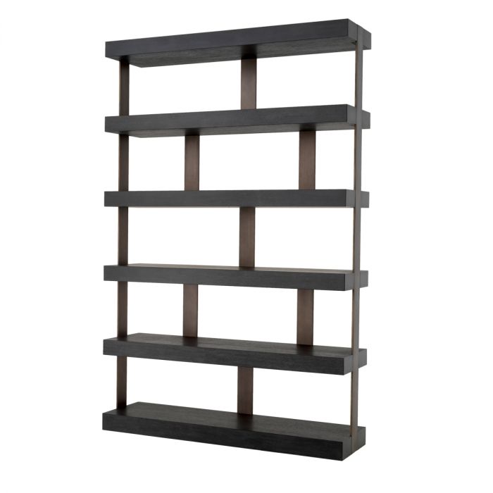 Hylla Dalmar kombinerar en robust estetik med geometriskt tilltalande detaljer, vilket gör det till en fantastisk statement-piece i ditt vardagsrum eller arbetsrum. Den bronsfärgade finishen ger skåpet en elegant och tidlös charm som passar väl in i olika inredningsstilar. Med sina fem rymliga hyllor i kolfärgad ekfanér erbjuder det gott om plats för att både förvara och visa upp dina personliga föremål, favoritböcker och konstverk. Dessutom ger den gedigna konstruktionen och kvalitetsmaterialen en känsla av hållbarhet och stabilitet, vilket gör att skåpet inte bara är vackert utan också praktiskt och funktionellt.