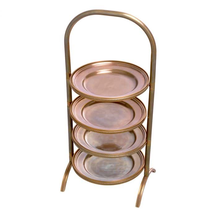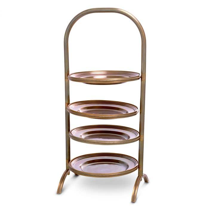 Praktiskhet och flexibilitet går hand i hand med kakfatet Encore. Med en vintage mässingsfinish och en mångsidig design som gör att brickorna kan flyttas är Encore det perfekta stycket för att servera kakor, bakverk och andra desserter.
