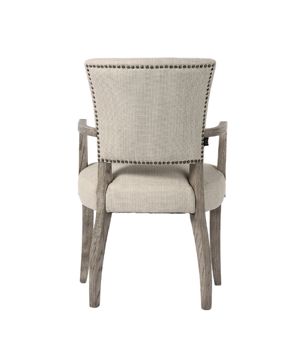 Maggie karmstol från Artwood är en elegant stol som kombinerar enastående komfort med tidlös design. Klädd i det högkvalitativa vävda tyget Sway Natural får stolen ett raffinerat uttryck som passar in i både moderna och klassiska miljöer. De robusta träbenen ger stabilitet och hållbarhet, medan de dekorativa nitarna längs ryggstödet adderar en sofistikerad detalj som framhäver stolens eleganta karaktär. De bekväma armstöden gör Maggie till ett utmärkt val för långa middagar eller avslappnade stunder runt matbordet.