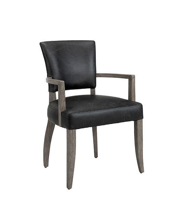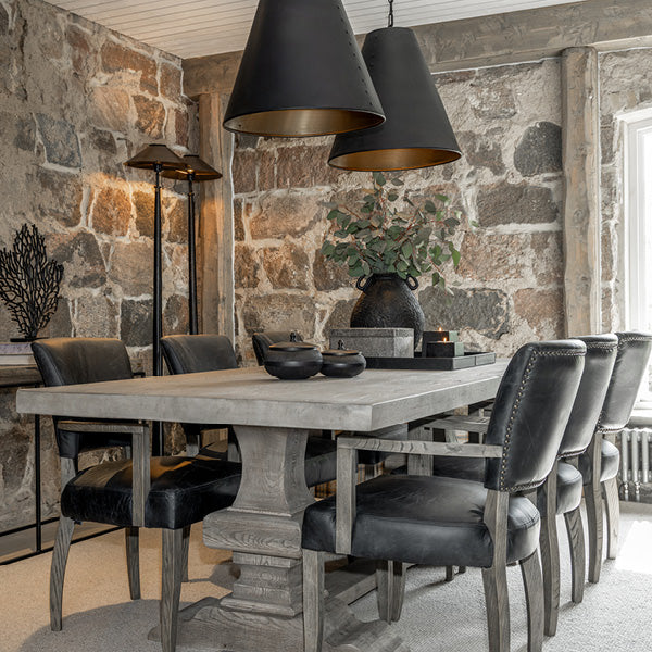 Maggie karmstol från Artwood i högkvalitativt skinn i färgen Vintage black kombinerar exklusiv komfort med tidlös design. De robusta träbenen ger stabilitet och hållbarhet, medan de dekorativa nitarna på ryggstödet tillför en sofistikerad detalj som lyfter stolens eleganta utseende. De bekväma armstöden gör stolen perfekt för långa middagar eller avslappnade stunder runt matbordet. Tack vare sitt klassiska och moderna uttryck passar den i både samtida och traditionella miljöer. Skinnets naturliga textur ger en lyxig känsla, samtidigt som det är lätt att underhålla, vilket gör stolen till ett praktiskt och stilfullt val för ditt hem.