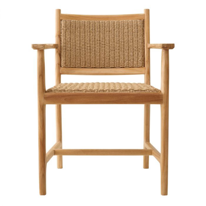 Karmstol Pivetti från Eichholtz är inte bara en stol för utomhusbruk utan en sann förening av form och funktion, designad för att hylla skönheten i naturen samtidigt som den erbjuder oöverträffad komfort och hållbarhet. Tillverkad av hållbart teakträ ger stolen inte bara en touch av tidlös elegans med sin naturliga teakfinish, utan den är också konstruerad för att stå emot elementens påverkan under lång tid. Dess polyetenitsits och ryggstöd är inte bara robusta och väderbeständiga utan också enkla att underhålla, vilket gör det till en perfekt lösning för utomhusmiljöer där både stil och funktionalitet är viktiga.