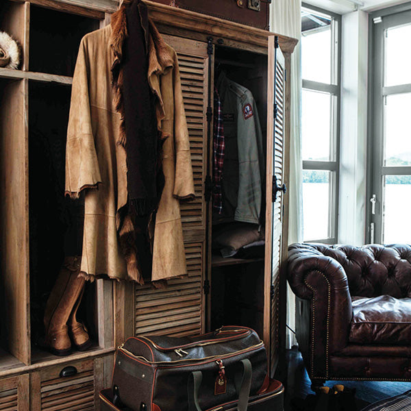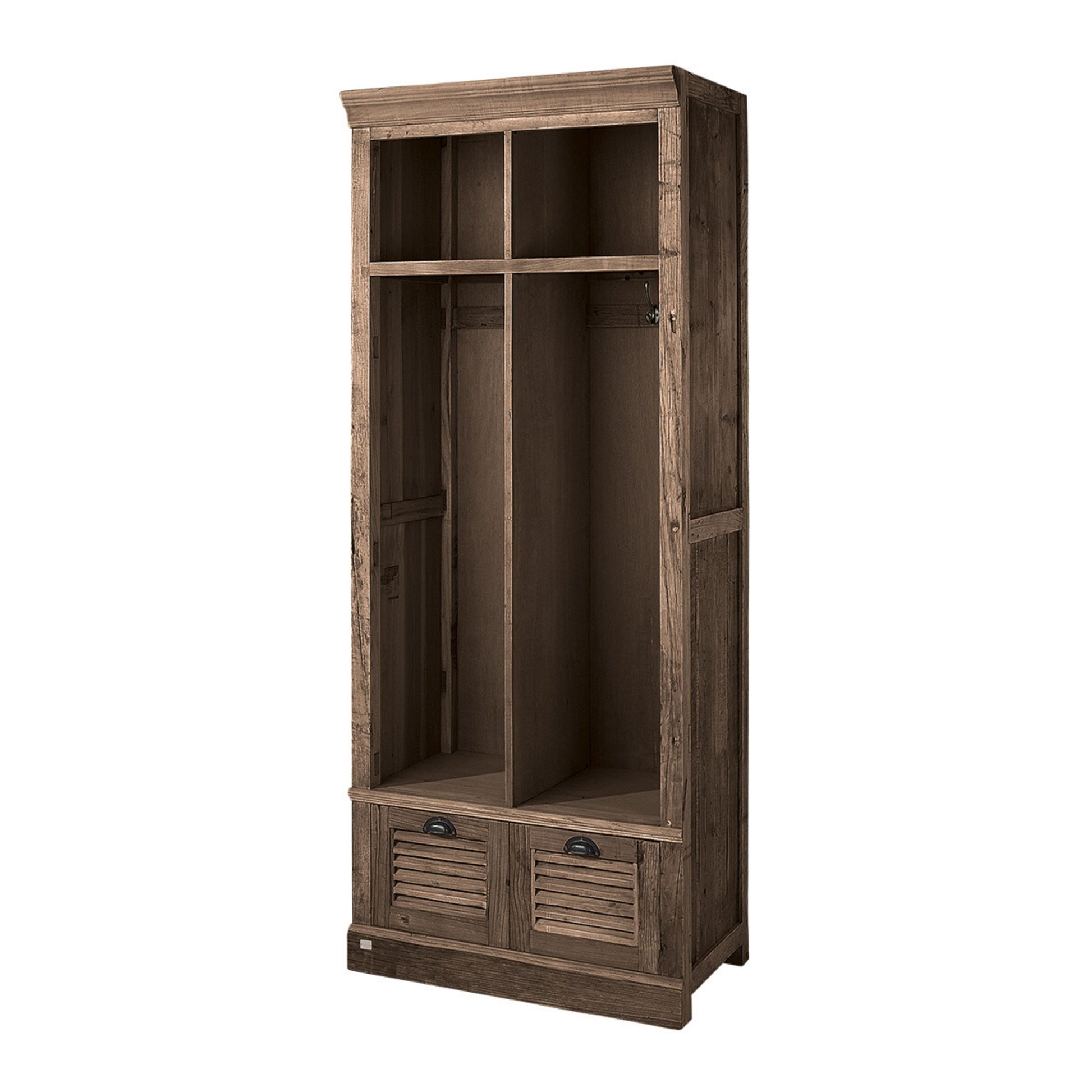 Ett mycket härligt, genuin och rustikt klädskåp i almträ. Härliga fina detaljer och gott om förvaring i nedre delen och en klädstång i övre delen.