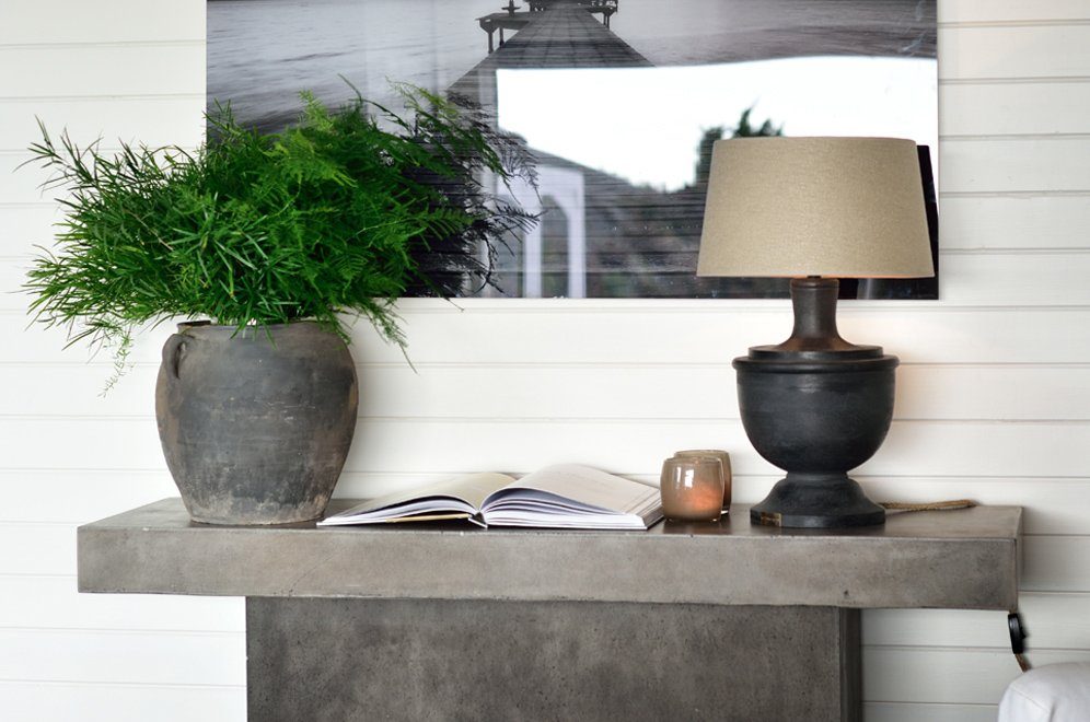 Ett mycket läckert och häftigt sidobord i lättbetong med vaxad yta som ger den rustika, lite råa känslan en elegant ytfinish. Perfekt för den som vill bjuda in lite tuffare miljö i sin heminredning.