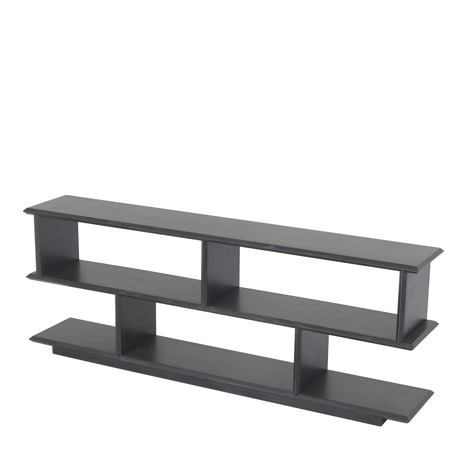 Denna hylla, eller konsolbord, i kolgrå ekfaner är precis vad du behöver för att toppa på din inredning med massa extra känsla. Tack vare de rymliga ytorna och stora hyllorna erbjuder Garcia gott om utrymme för förvaring av dekorativa föremål eller böcker. Använd den som ett konsolbord, bokhylla eller avlastningsbord. Finish “Charcoal Grey Oak Veneer”.