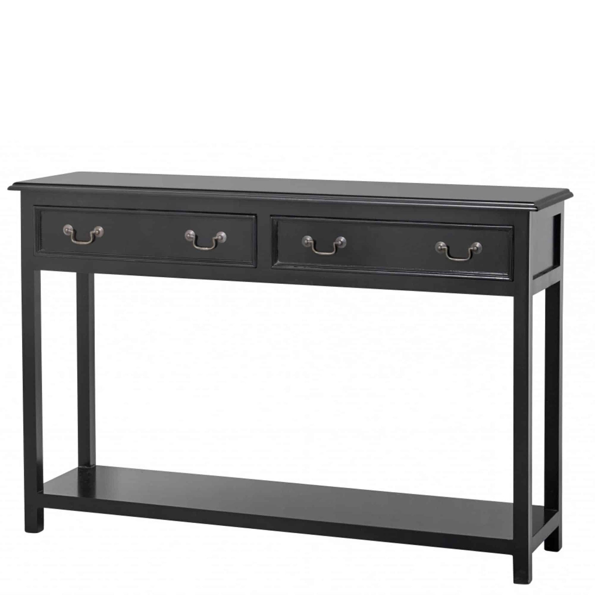 Ett stilrent och mycket snyggt sidobord i svartlackerat mangoträ och två lådor för praktisk förvaring. En mycket läcker inredningsdetalj som passar de flesta inredningar. Perfekt i hallen, matsalen eller som extra avlastning i köket.