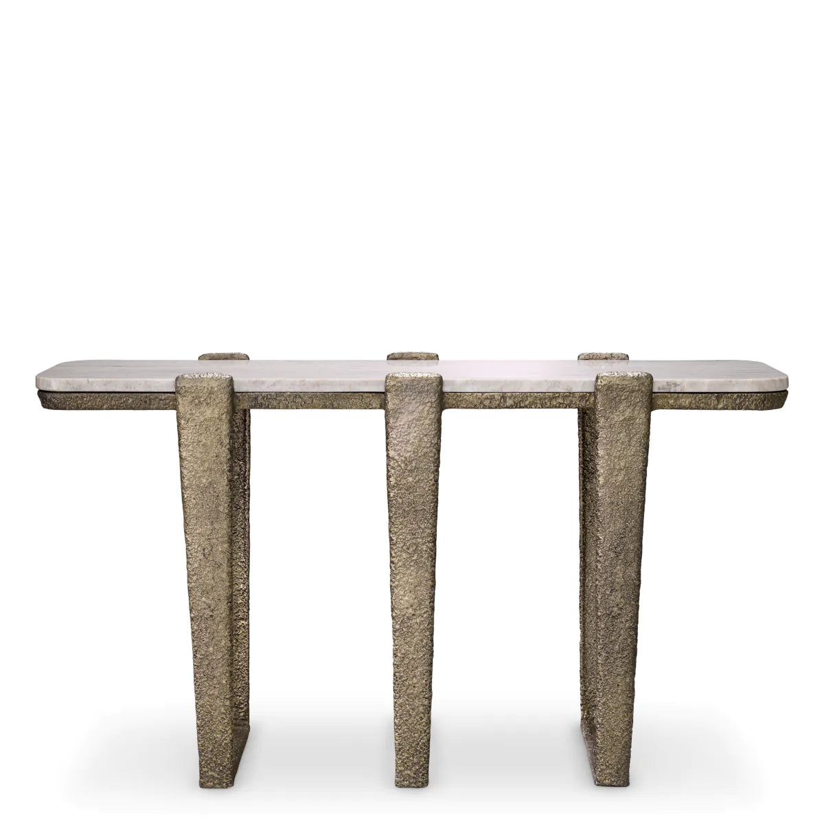 Konsolbord Orinda från Eichholtz i Antique brass finish | beige marble top utstrålar en tidlös elegans och passar perfekt för att lyfta fram sofistikerade utrymmen.
