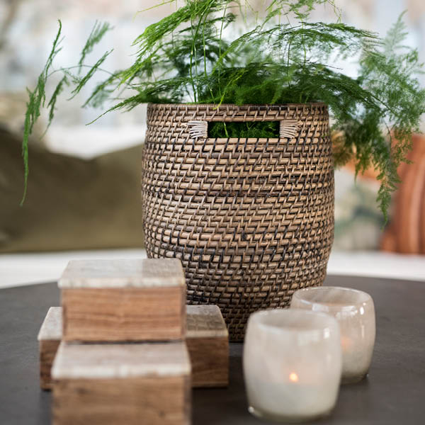 Vacker rund korg med handtag, handgjord i slitstark rotting i färgen Natural antique från Artwood. Perfekt som stilfull förvaring eller som en dekorativ kruka för dina växter. Denna rottingkorg kombinerar estetik med funktion och passar alla inredningsstilar.