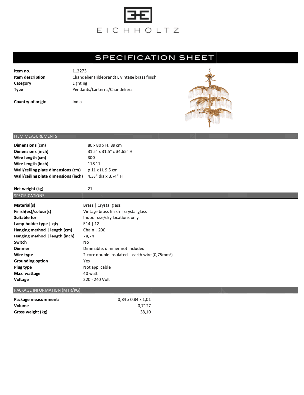 Chandelier Hildebrandt L från Eichholtz.