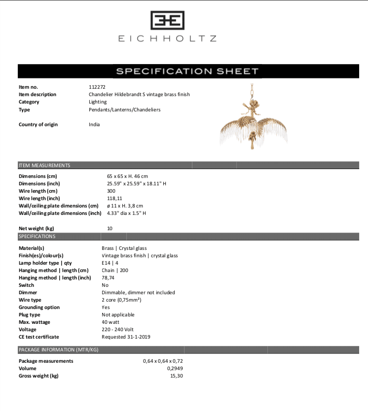 Chandelier Hildebradt S från Eichholtz.