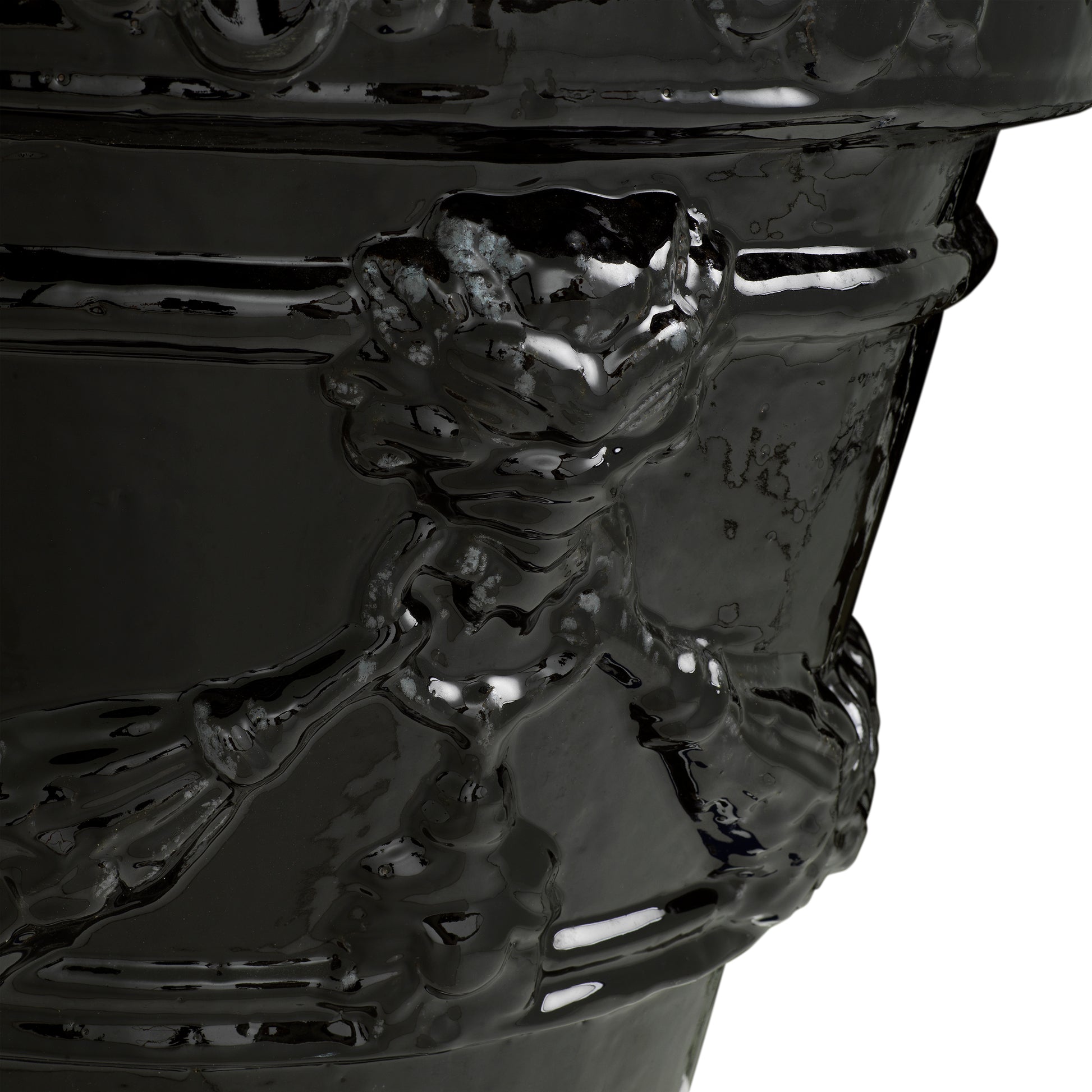 Kruka Toulon från Eichholtz utstrålar diskret lyx med sin glansiga svarta keramikyta. Den subtilt oregelbundna ytan, ett kännetecken för dess unika tillverkningsprocess, tillför djup och karaktär och gör krukan till ett elegant inslag i interiörer som uppskattar djärva texturer och tidlösa monokroma paletter.