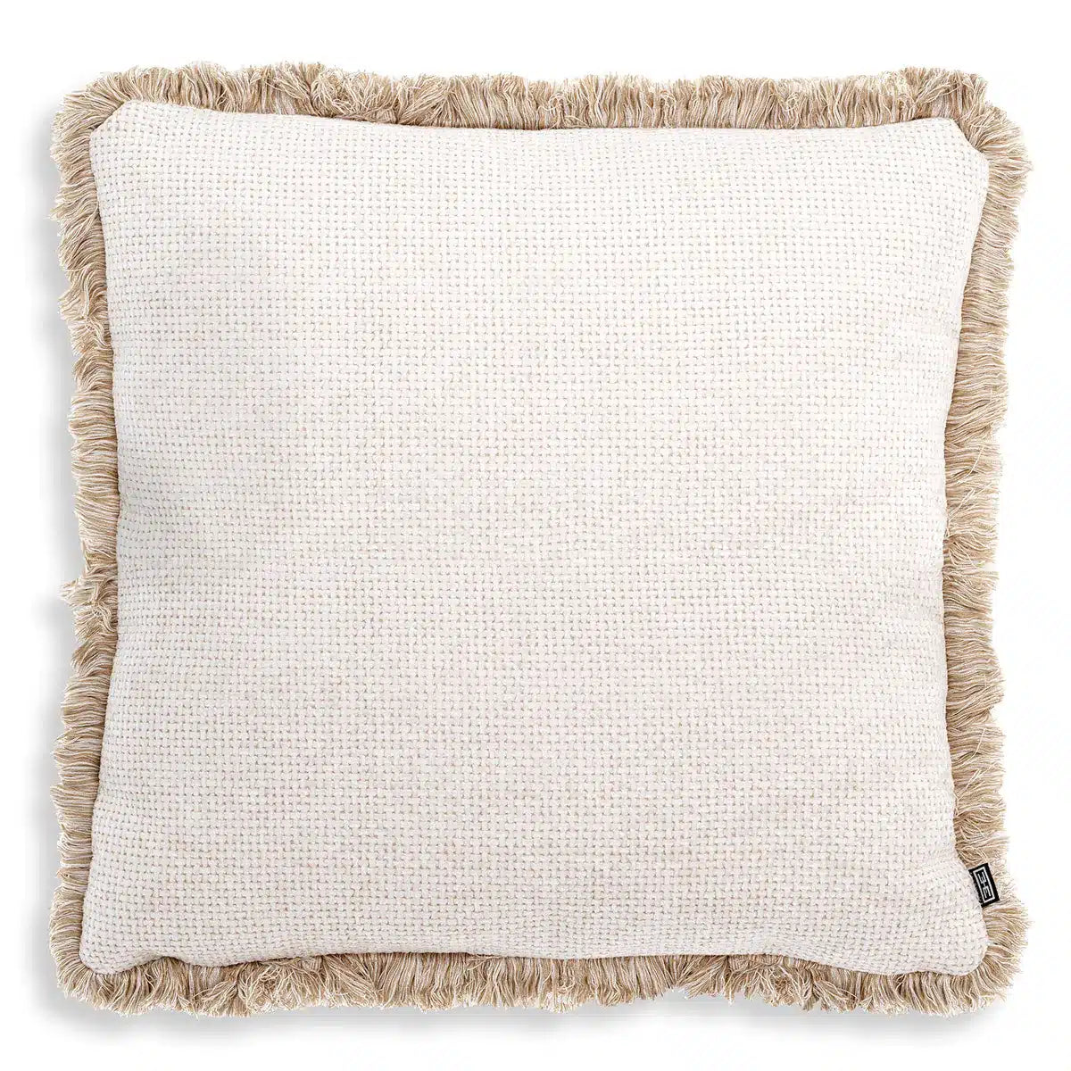 Skäm bort dig själv med en känsla av lyx genom att addera den läckra kudden Nami till din inredning. Denna kvadratiska prydnadskudde, med sina mjukt rundade hörn, utstrålar en känsla av sofistikation och komfort. Det mjuka överdraget i tyget Lyssa off white i en elegant vit nyans kompletteras med krämfärgade fransar som adderar en extra touch av stil och finess.