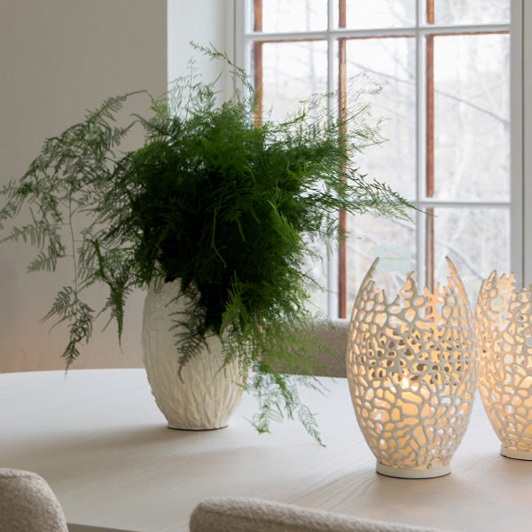 Lykta Bari med hålmönster i metall från Artwood. När ljuset tänds skapas en stämningsfull och mysig belysning genom de dekorativa hålen, vilket gör lyktan till en perfekt inredningsdetalj.