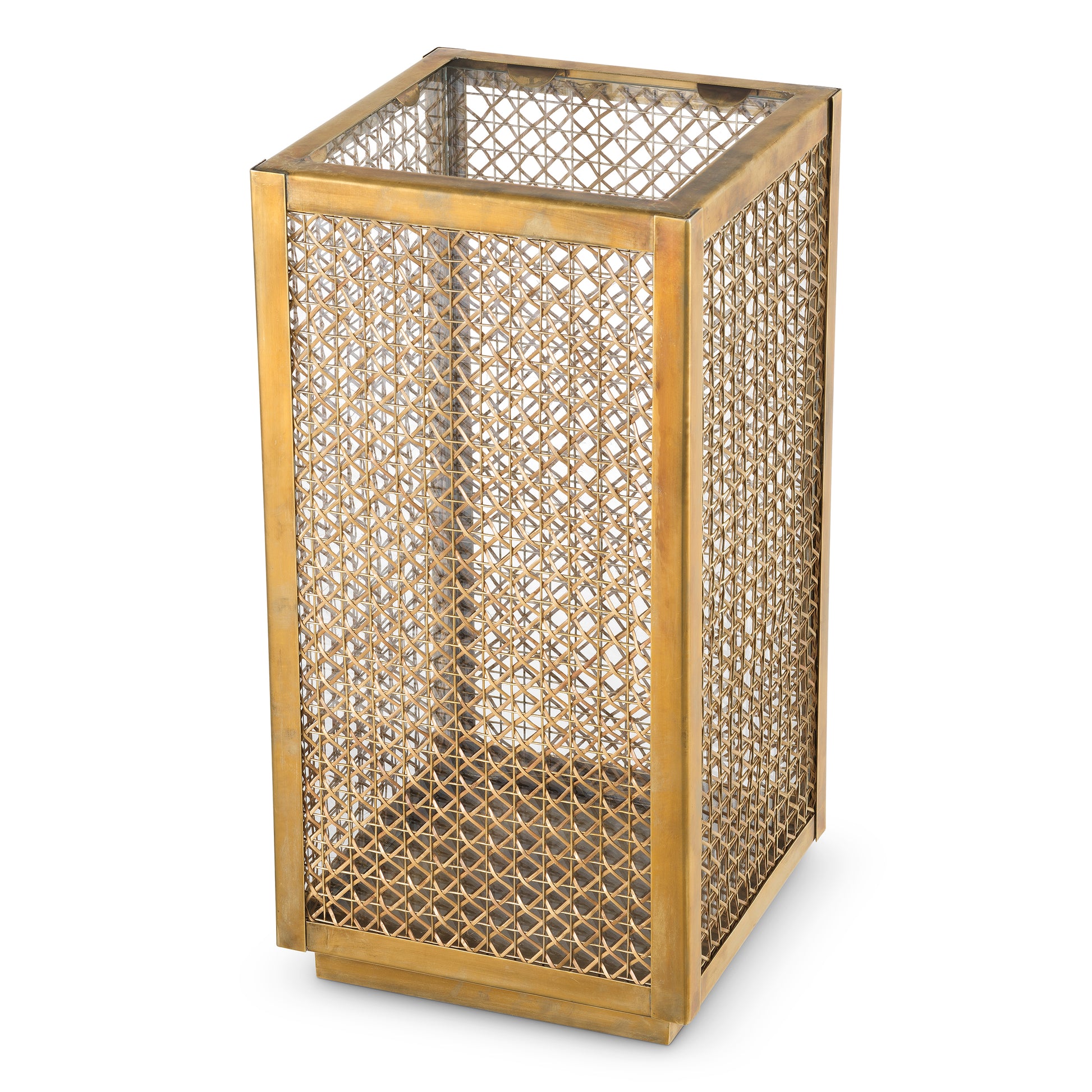 Ljuslykta Cairo L från Eichholtz har en vintage-mässingsfinish kombinerad med rattan. Denna eleganta ljuslykta förenar varma metalltoner med naturmaterialets textur, vilket skapar en sofistikerad kontrast och tidlös charm.
