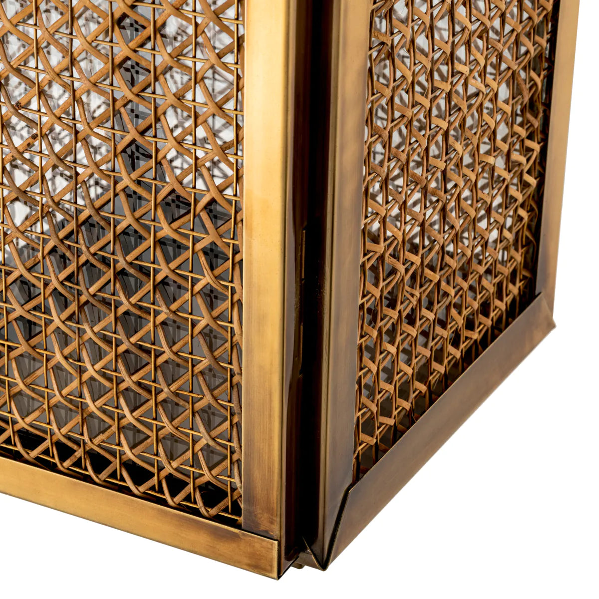 Upplev tidlös elegans med Eichholtz Ljuslyktan Festival L. Denna imponerande ljusinstallation kombinerar en vintage mässingsfinish med ett Rotting-galler, vilket ger en sofistikerad och rustik charm. Perfekt för att skapa en lyxig och inbjudande atmosfär i ditt hem, Hurricane Festival L fungerar både som ett funktionellt ljus och ett konstnärligt inredningselement. En perfekt mix av klassisk stil och modern design.