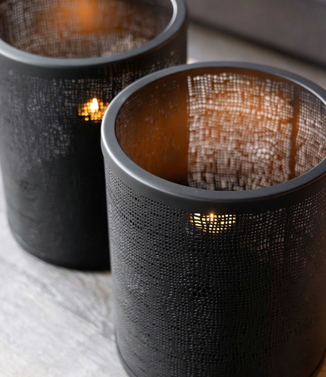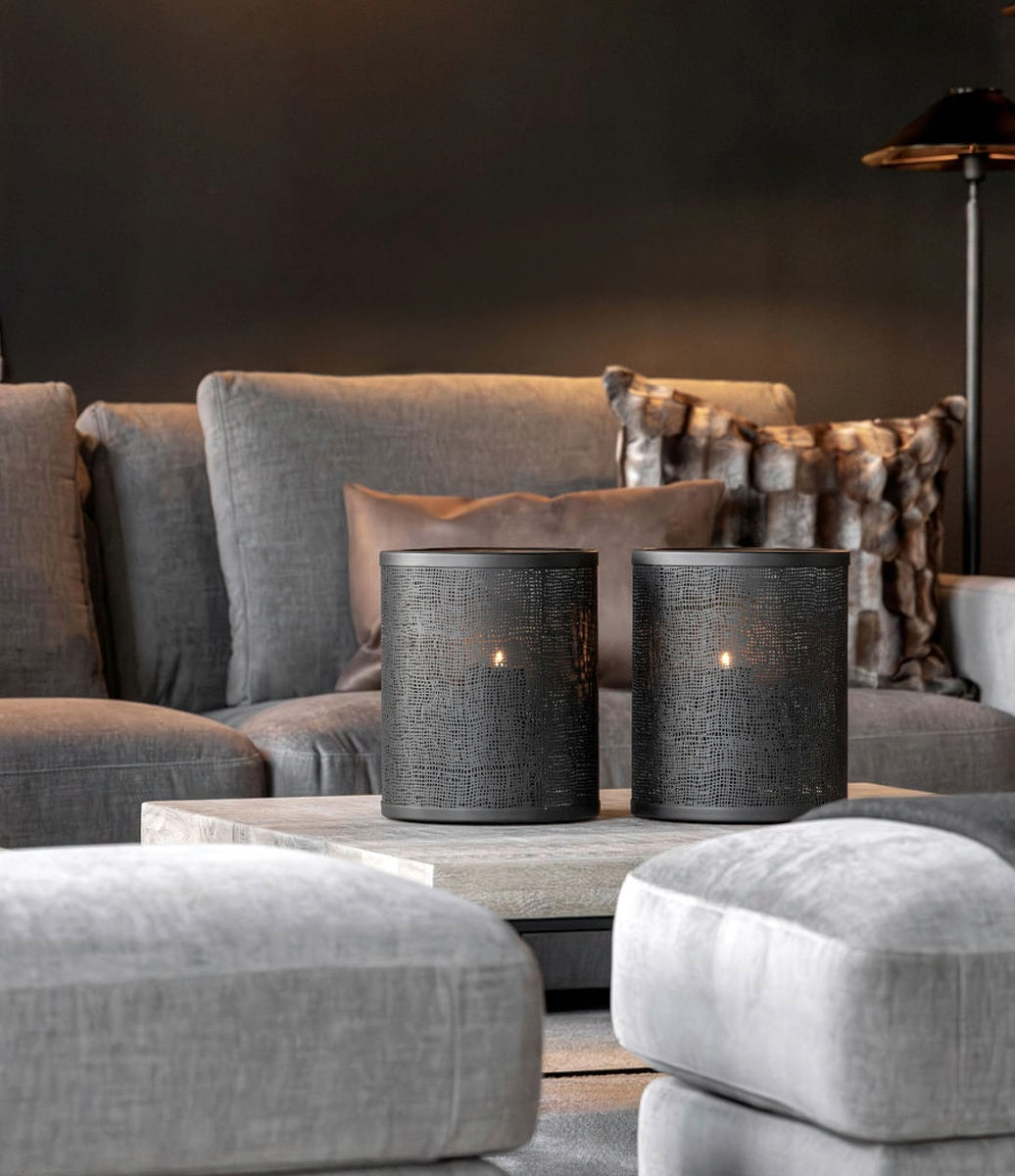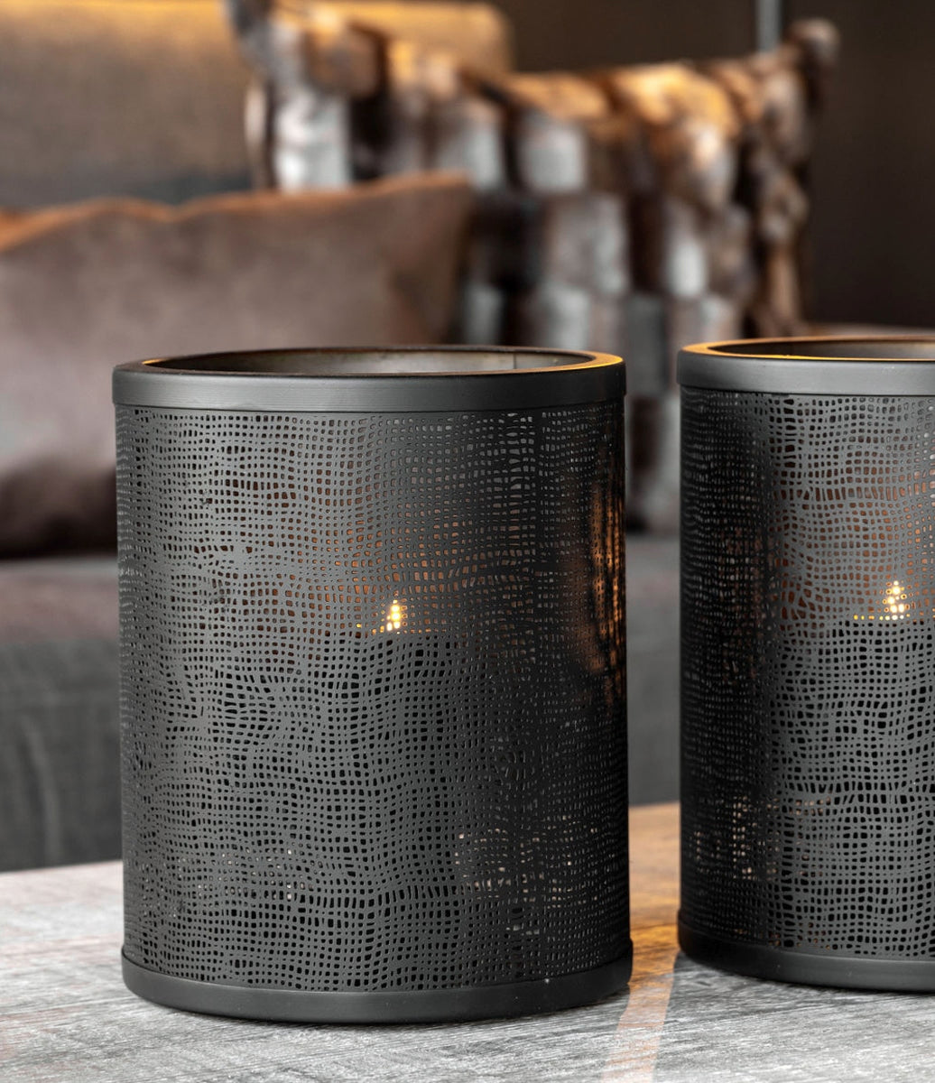 Skapa en inbjudande stämning med Taranto i svart metall. Framtagen i en minimalistisk design med en lite industriell touch, tack vare materialet i metall. Lyktorna skapar en luftig och balanserad kontrast och har små hål som låter ljus skina igenom, vilket skapar härlig atmosfär i ditt hem. Oavsett om du placerar lyktorna på en fönsterbräda, i hallen eller i vardagsrummet skapar du förutsättningarna för en mysig kväll.