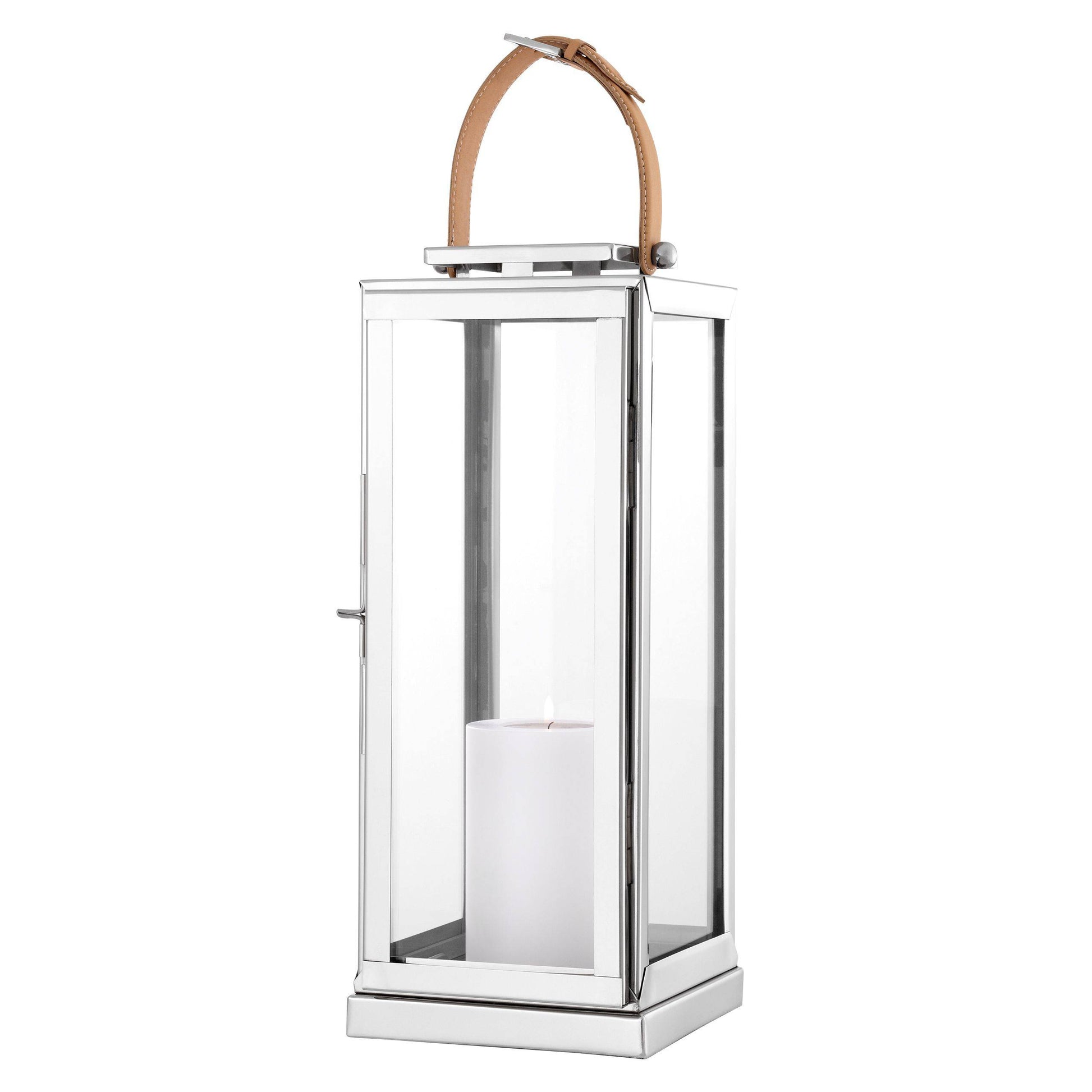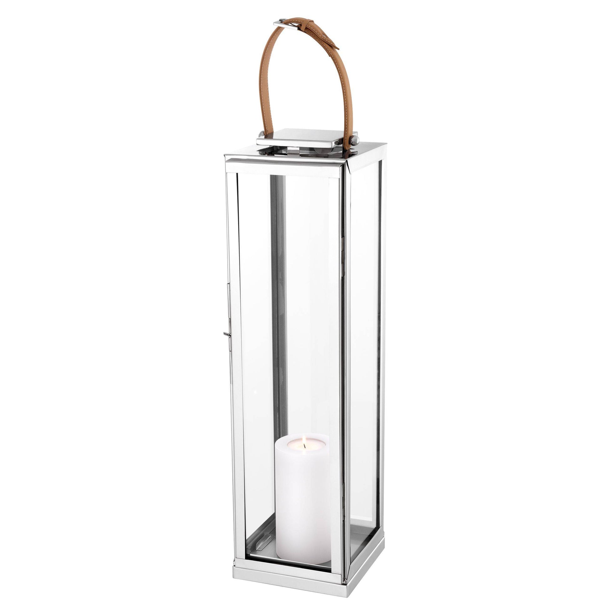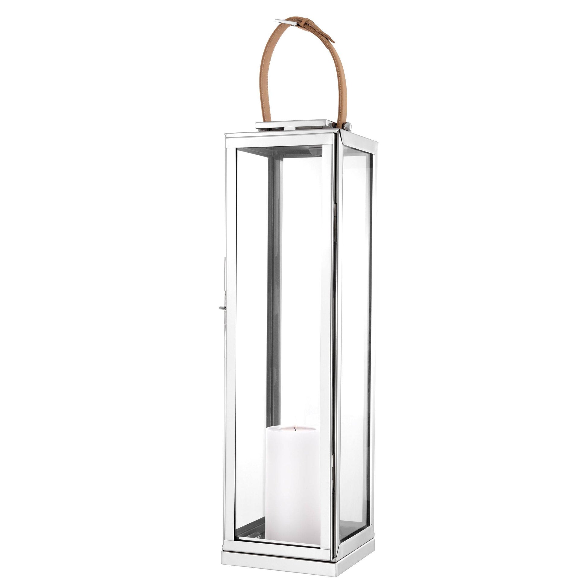En klassisk ljuslykta med modern touch och väldigt exklusiv finish. Fyra glaspaneler i klart glas, nickelfinish och handtag i finaste läder gör denna härliga lykta till en mycket omtyckt inredningsdetalj.