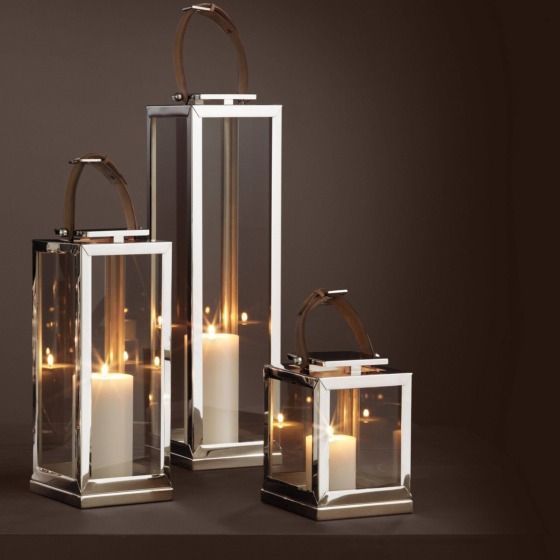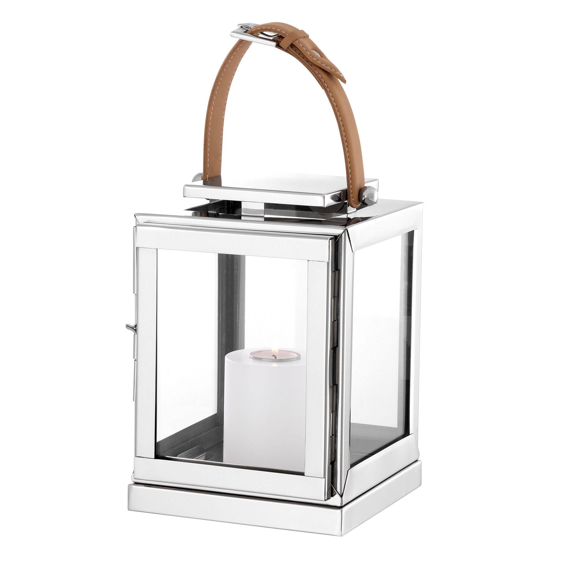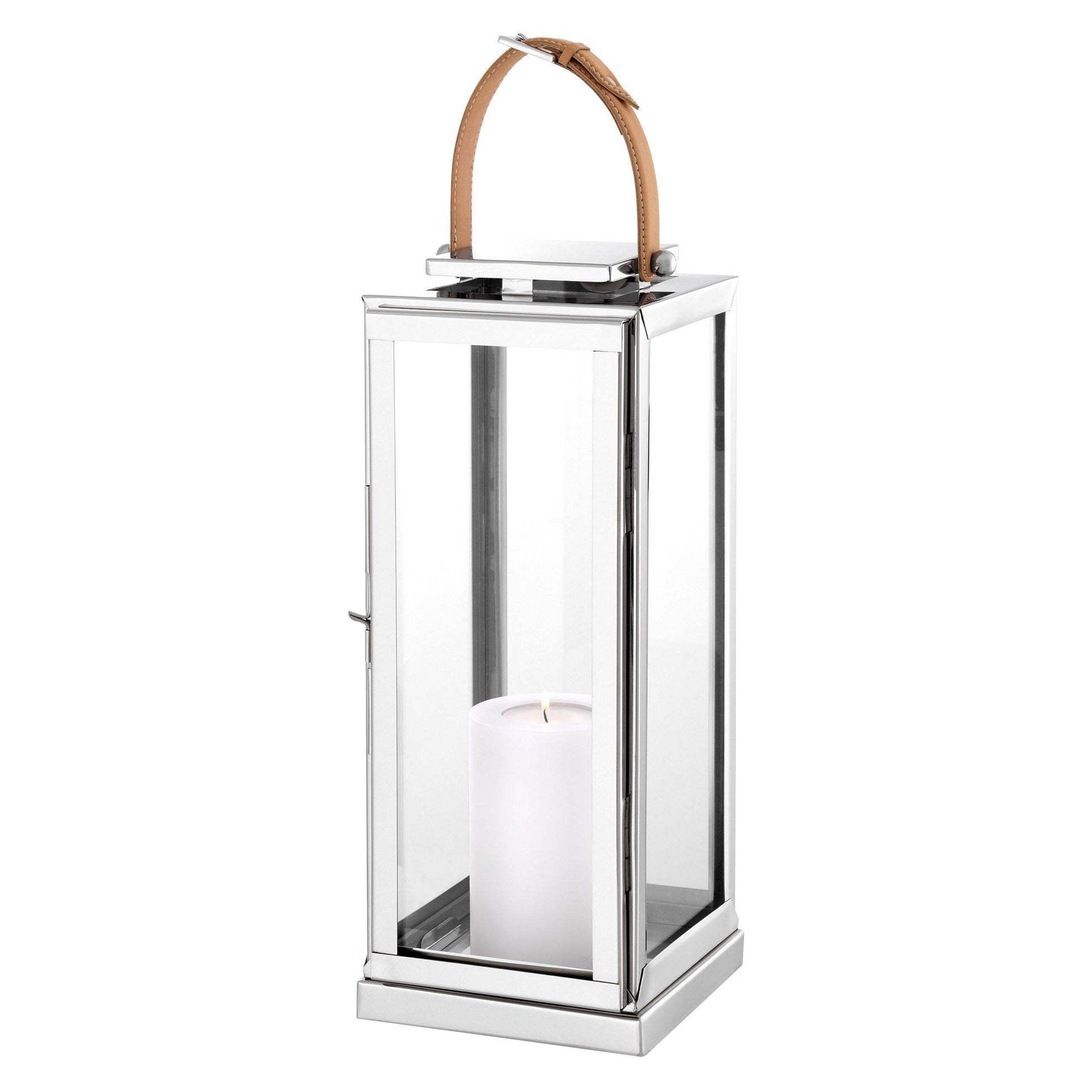 En klassisk ljuslykta med modern touch och väldigt exklusiv finish. Fyra glaspaneler i klart glas, nickelfinish och handtag i finaste läder gör denna härliga lykta till en mycket omtyckt inredningsdetalj.