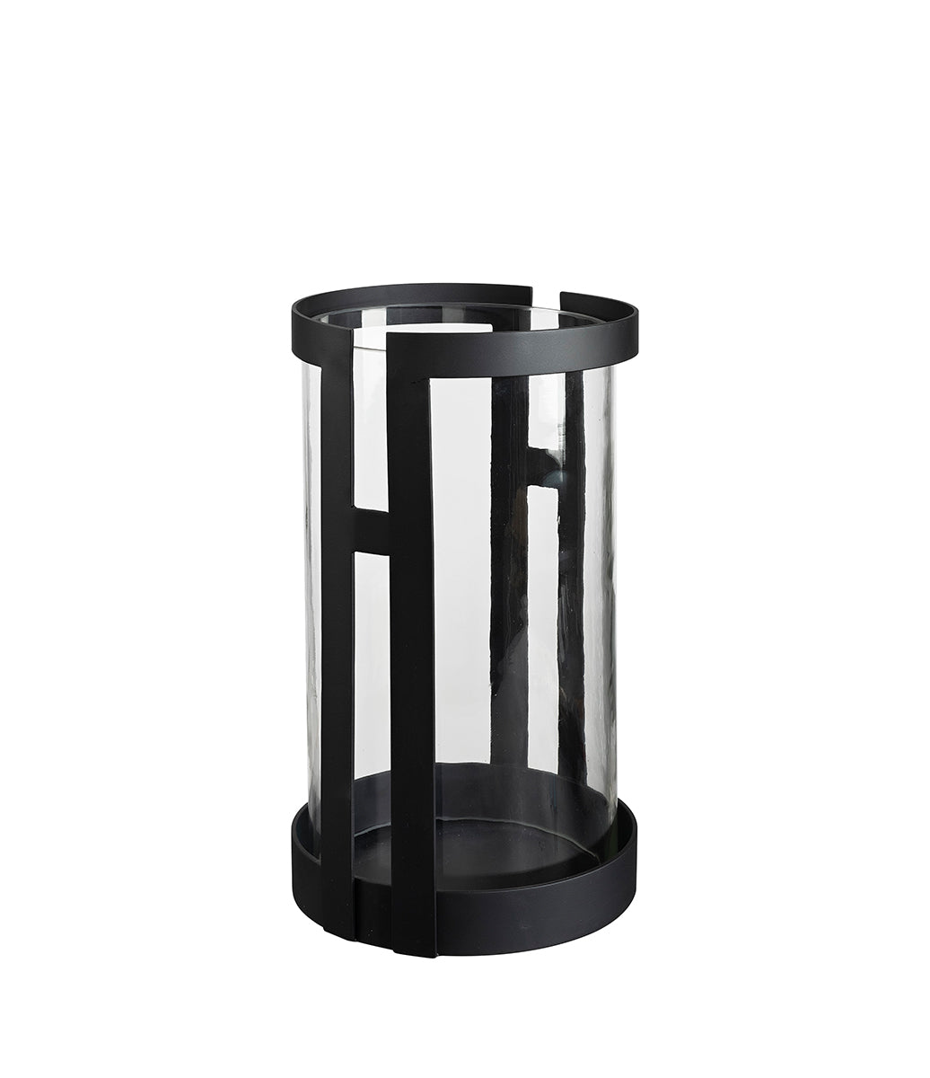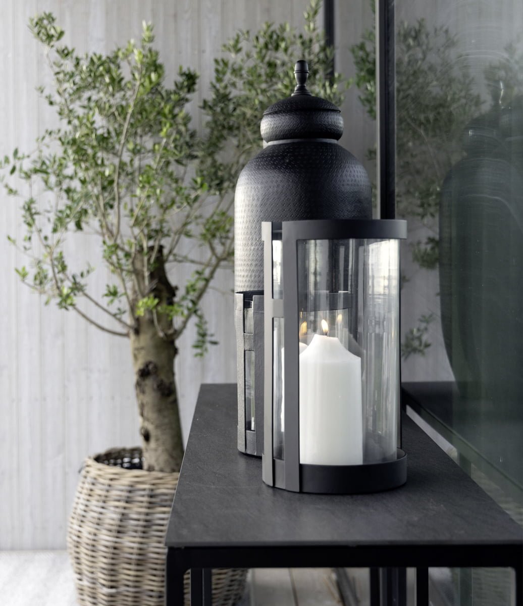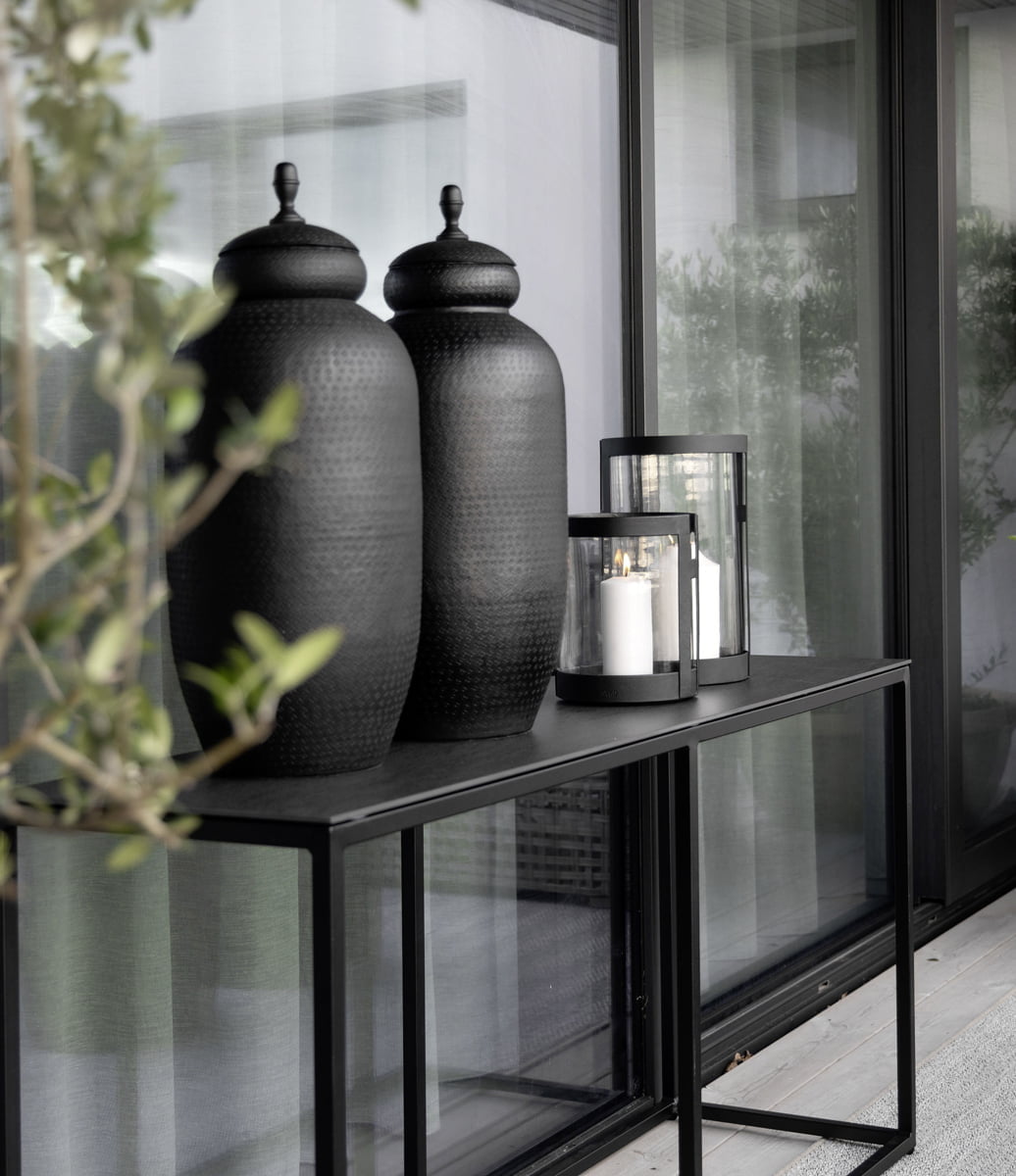 Lykta Santino Outdoor i färgen Svart är en utomhuslykta i pulverlackerad metall och handblåst glas från Artwood.