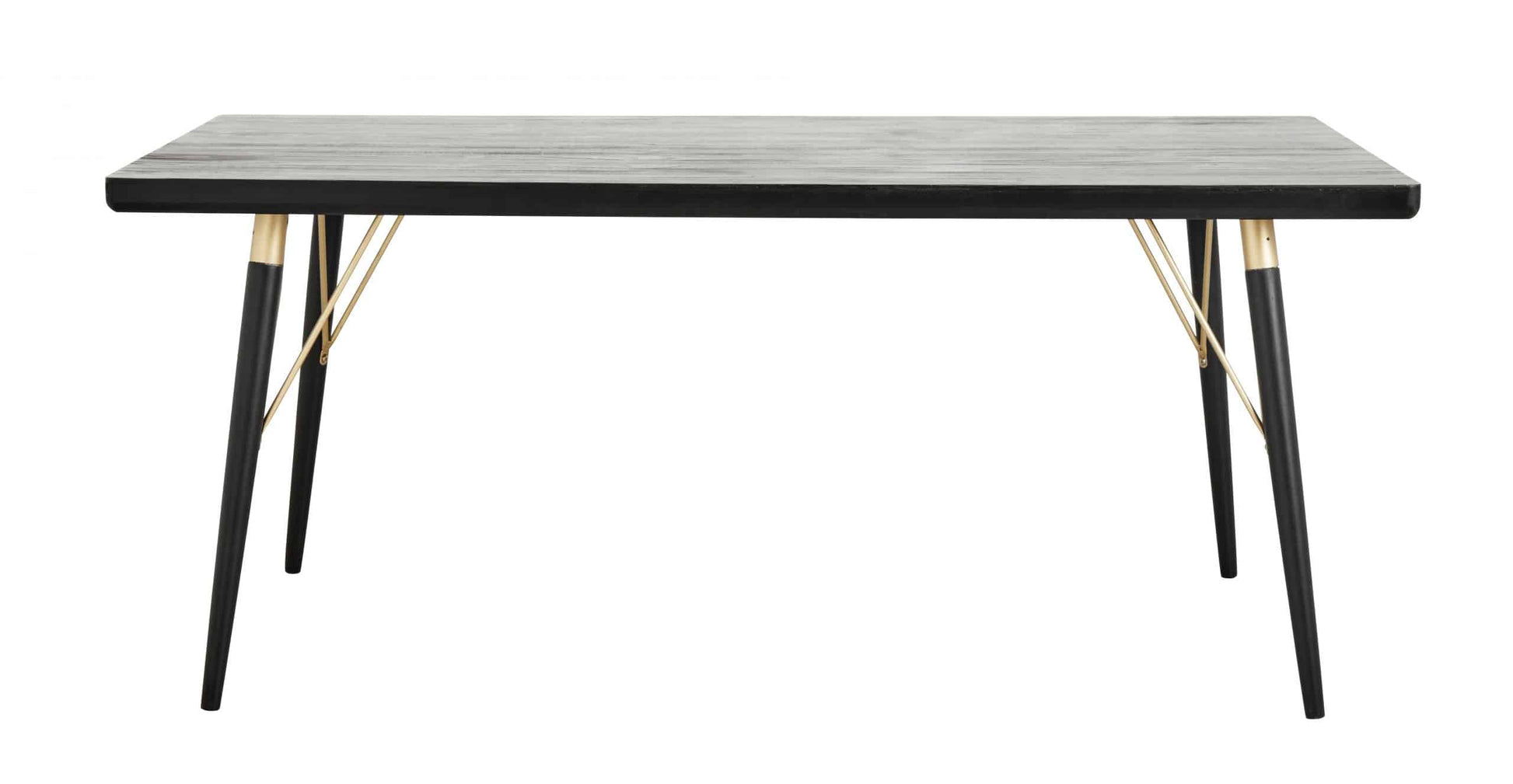 Vackert bord i svartlackerat trä med fina gyllene detaljer längst upp på de rundade benen. Ett utsökt och trevligt, stabilt bord att samlas för sociala måltider eller arbete. Bordet har en mycket fin bordsskiva där trädets struktur fortfarande är synlig.
