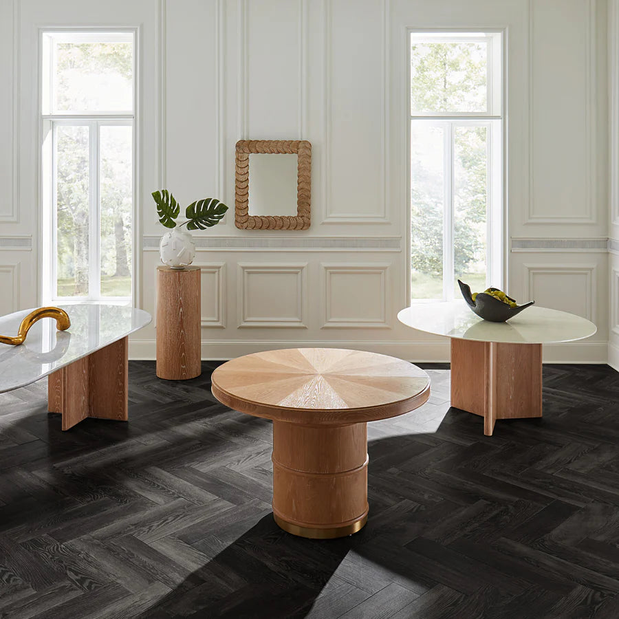 Med rena arkitektoniska linjer och ultralyxiga material framkallar detta runda marmor – och ekbord Brussels känslan av det ultimata Brooklyn-radhuset eller Tribeca-loftet. Modernt, tidlöst och helt i tiden. Fungerar även som ett elegant spelbord i en outnyttjad hörna av ditt vardagsrum.