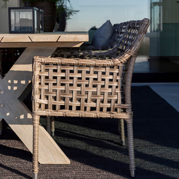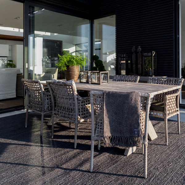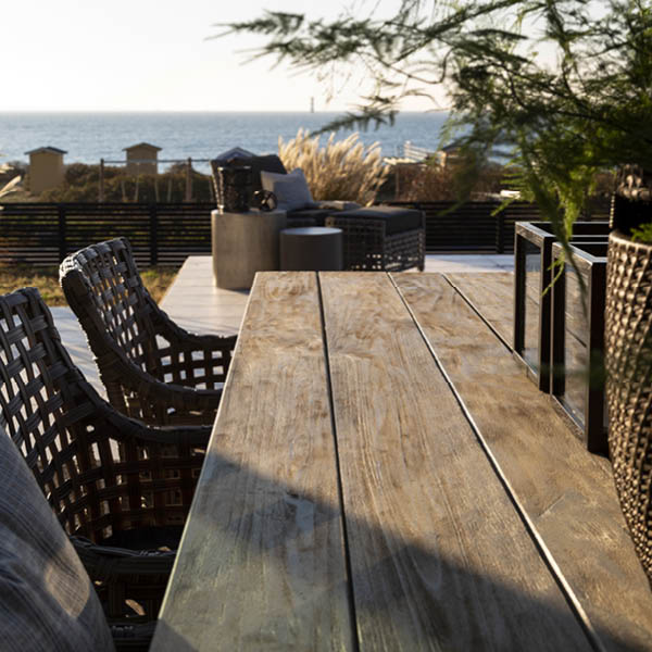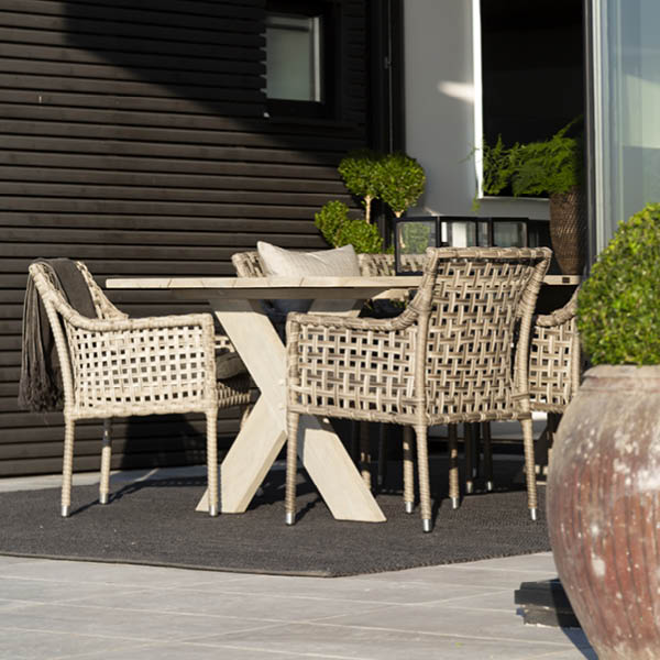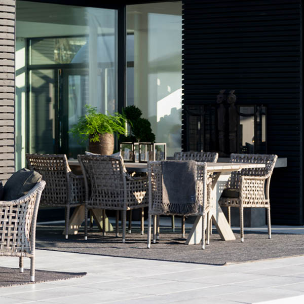 Tillverkat av högkvalitativ teak kombinerar Cross matbord både hållbarhet och estetik. Teak är ett träslag med särskilt goda egenskaper för möbler och inredning – det är hårt, tungt och elastiskt samt innehåller naturliga oljor som gör det mycket motståndskraftigt mot fukt och slag. Detta gör bordet extremt tåligt och väderbeständigt, vilket gör att det åldras vackert över tid och får en naturlig patina.