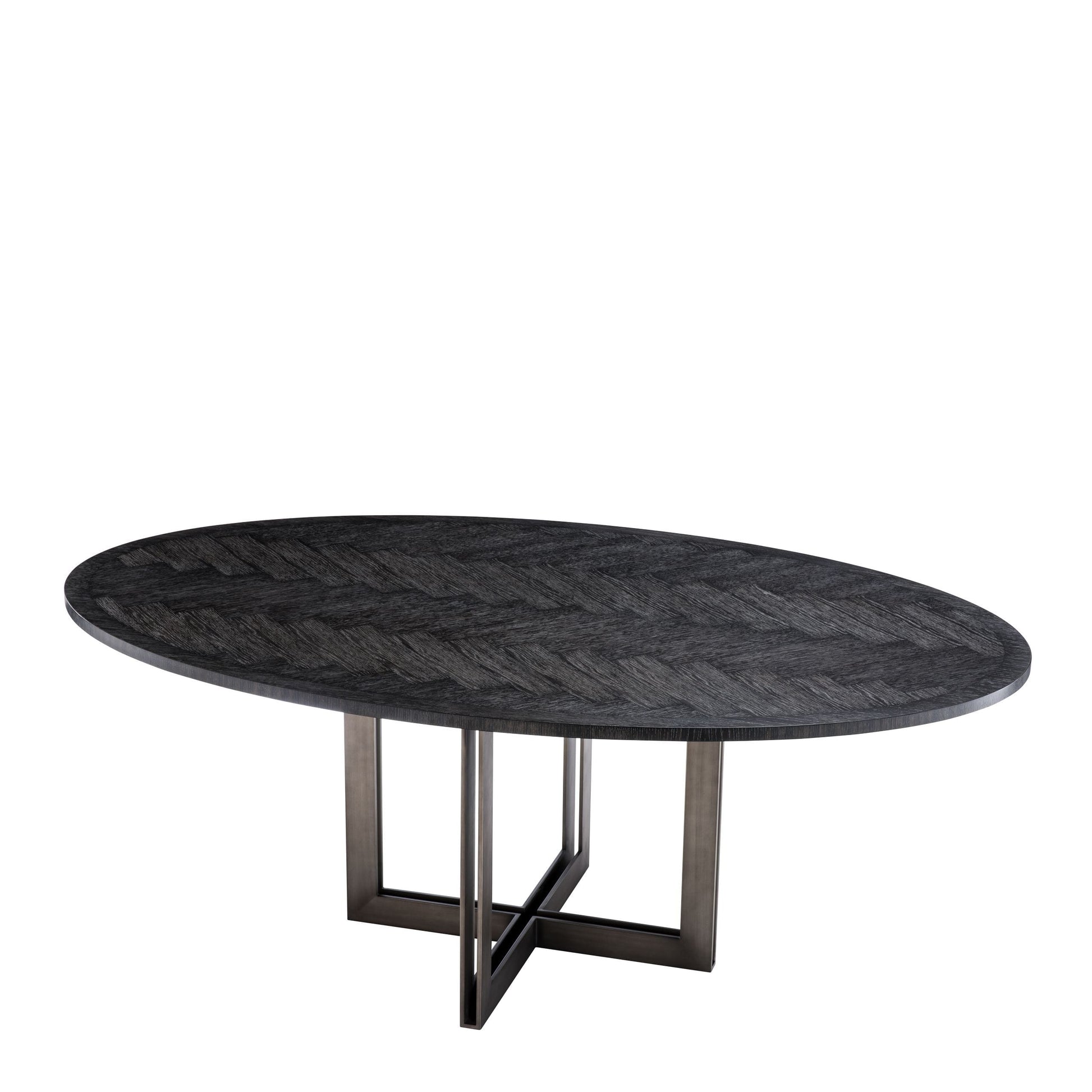 Ge din inredning ett härligt tillskott med detta fantastiska ovala matbord som har en bordsskiva i ekfanér. Som det vackra fiskbensmönstret på detta runda matbord visar, är fanér mycket lämpligt för hantverk med högsta ytfinish i träkolsliknande svart eller tvättad ek med läckra ljusa linjer. Fanér av hög kvalitet varar ofta längre än massivt trä som lätt vrider sig eller spricker över tiden.