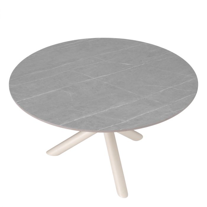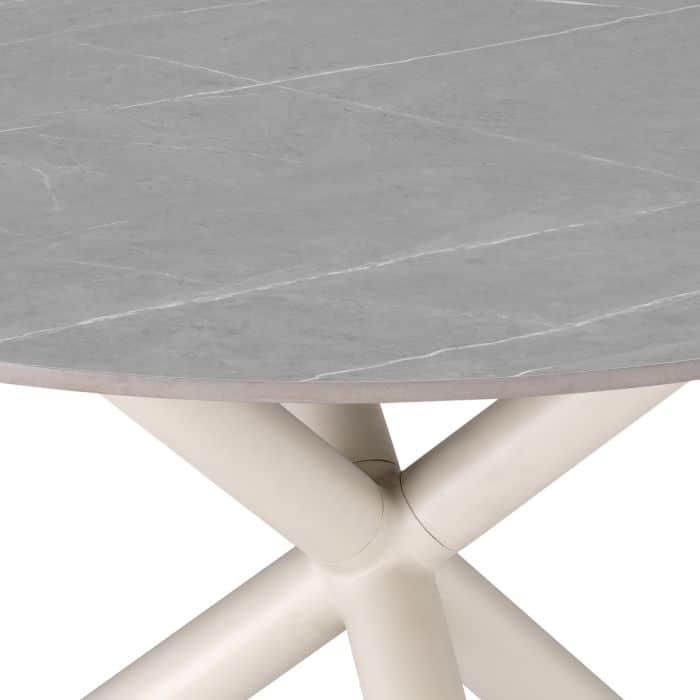 Den ljusgrå keramiska marmormönstrade bordsskivan ger en känsla av elegans och raffinering till din utomhusmiljö, medan aluminiumramen med sandfärgad finish ger en modern touch. Den keramiska toppen är inte bara visuellt tilltalande utan också konstruerad för att klara av alla utmaningar som utomhusmiljön kan ställa på den på ett helt annat sätt än ett motsvarande marmorbord. Upplev den perfekta balansen mellan stil och hållbarhet med matbord Nassau för din uteplats och skapa en atmosfär av sofistikerad och inbjudande atmosfär vid varje måltid.