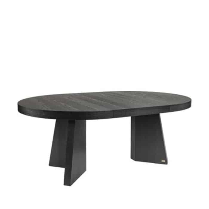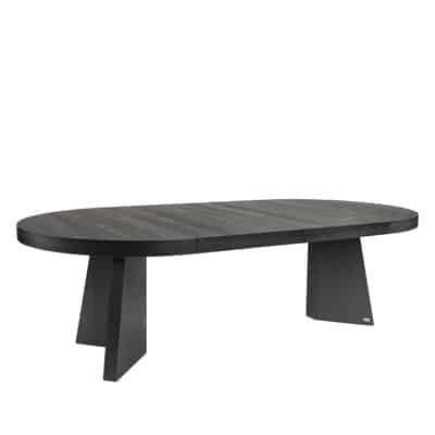 Ett läckert och snyggt matbord i läcker finish med vintagefärgad eller svart ekfaner och rejäl men elegant design. Ett matbord för de flesta inredningsstilar. Två iläggsskivor om vardera 60cm medföljer vilket gör bordet väldigt flexibelt och mångsidigt.