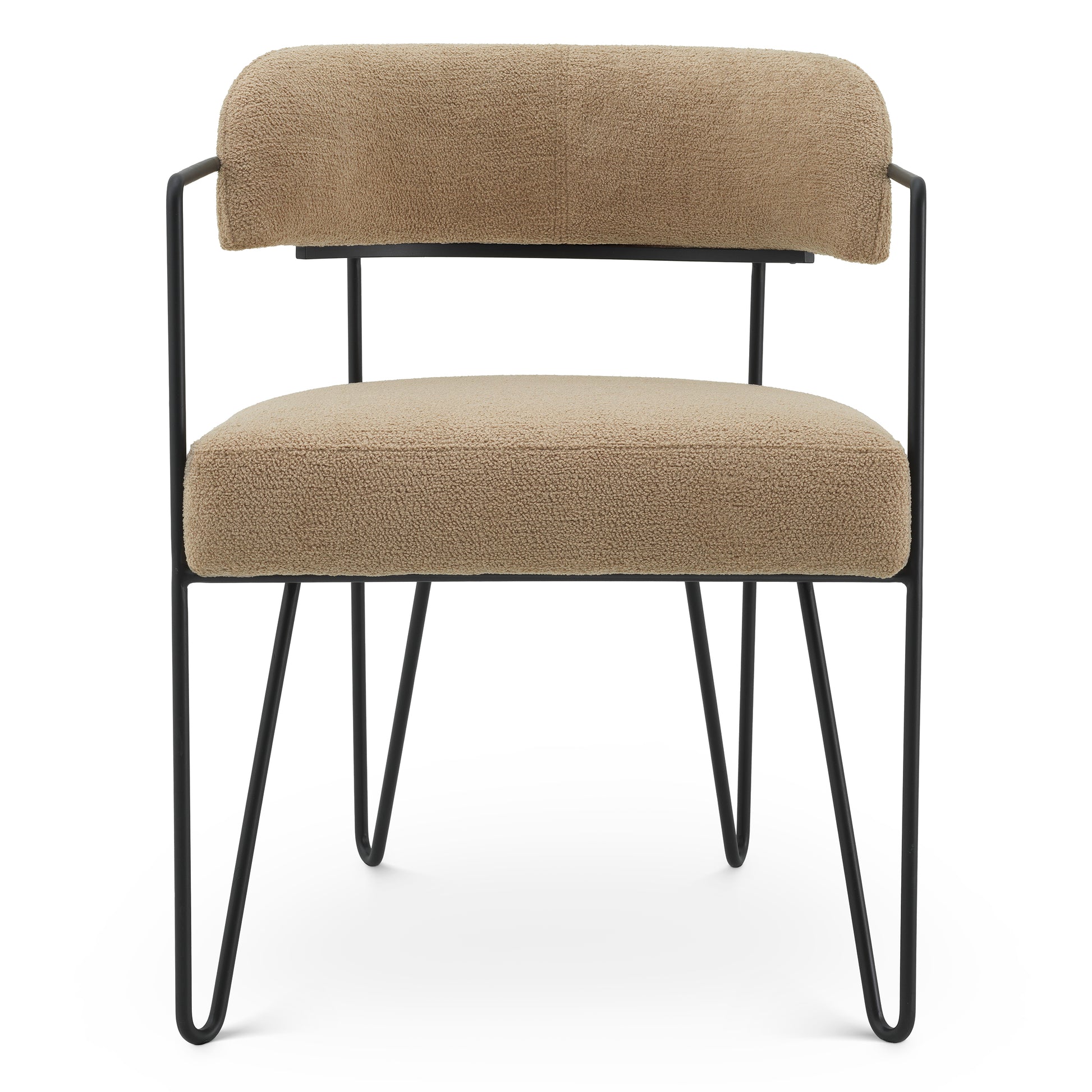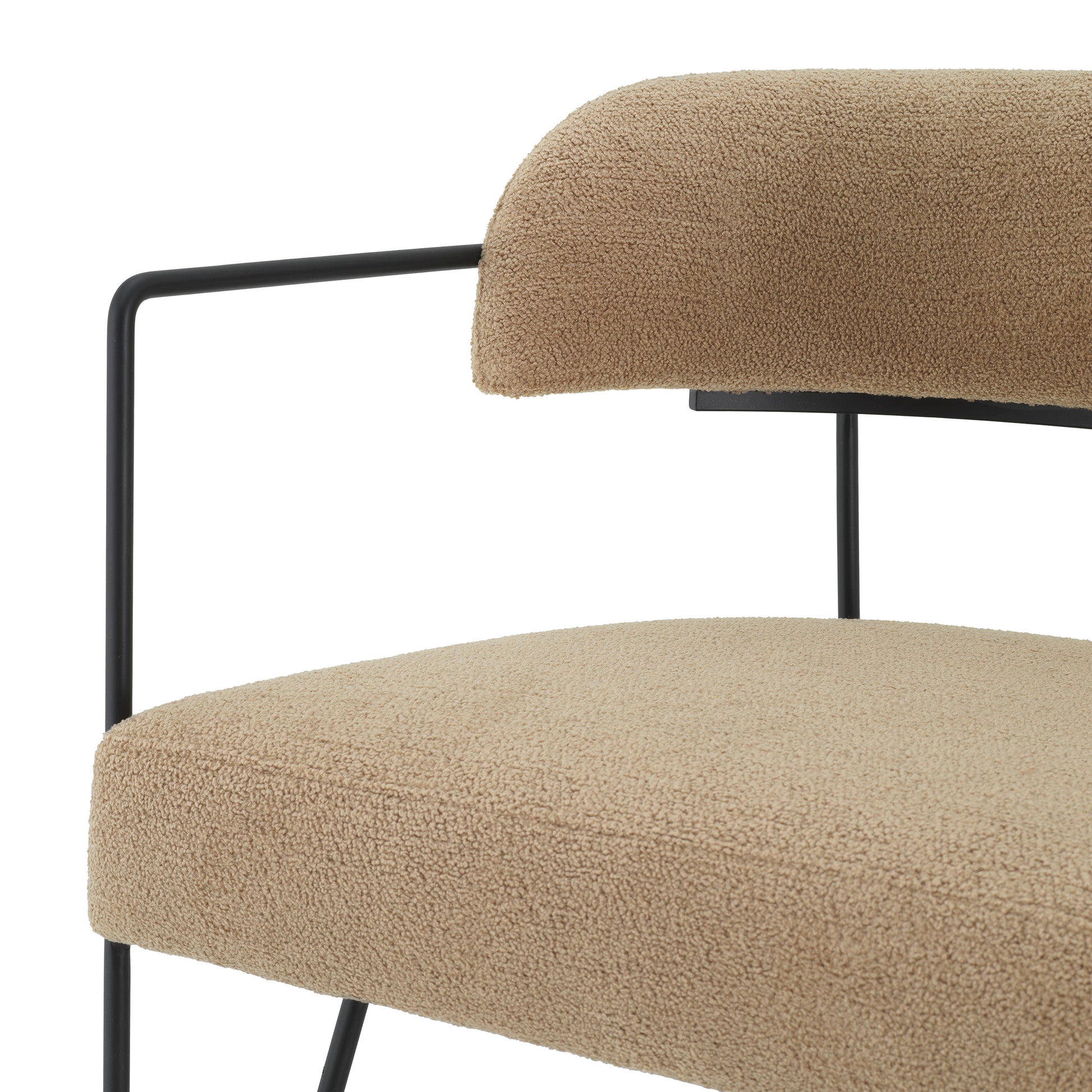 Stolen har en klädsel i Trenton beige med subtila variationer i färg och struktur, vilket ger varje exemplar en unik karaktär. De kontrasterande svarta benen skapar ett stilrent uttryck som lyfter helhetsintrycket runt matbordet.