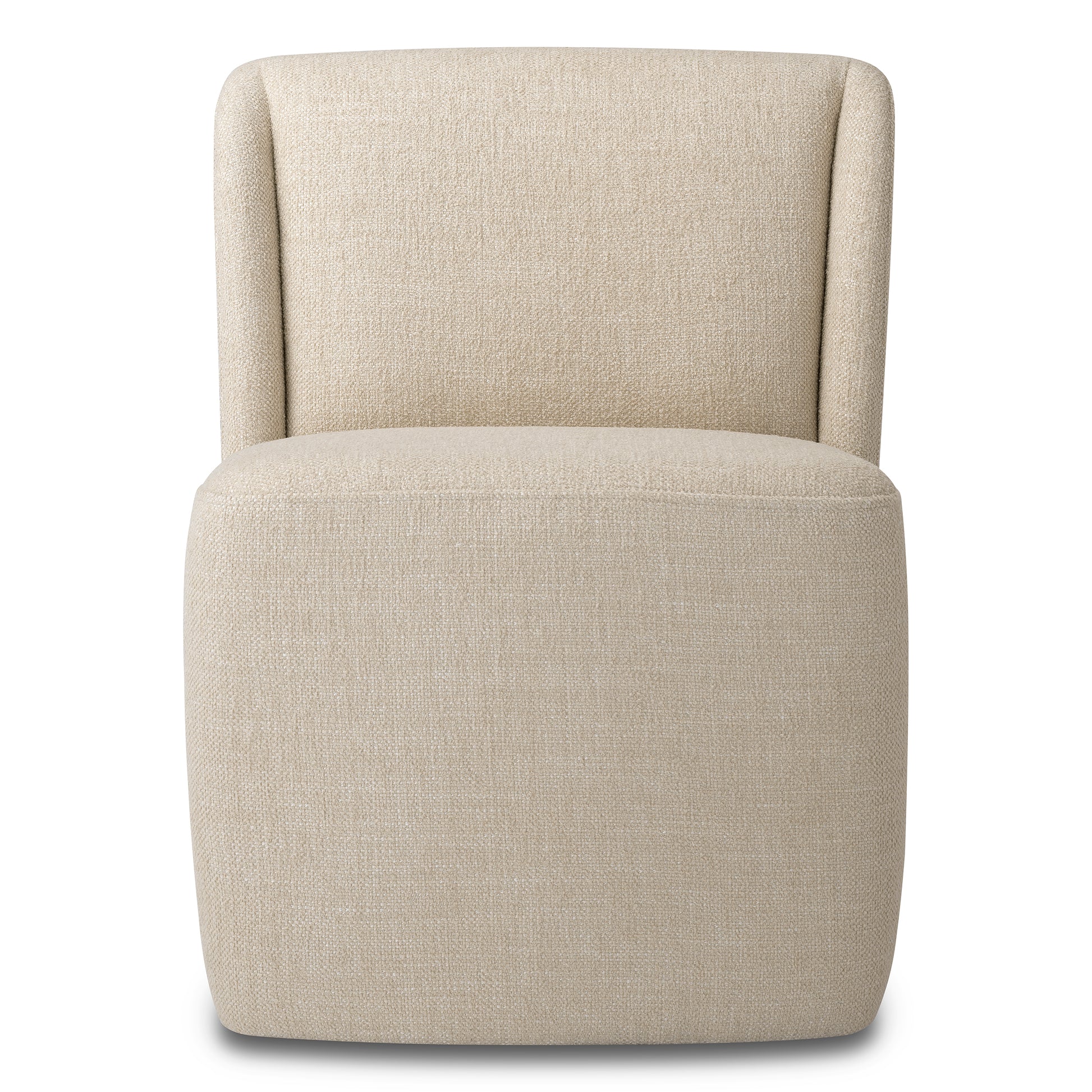 Matstolen Selene i Renato Ecru lyfter rummet med sin eleganta klädsel i det mjukt tonade Renato-tyget. De slanka konturerna och den subtila texturen utstrålar lugn lyx och förenar behagliga nyanser med ett taktilt, sofistikerat uttryck. Diskreta, smidiga hjul gör att stolen glider lätt och kombinerar stilfull design med funktionalitet – perfekt för en genomtänkt och exklusiv interiör.