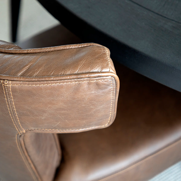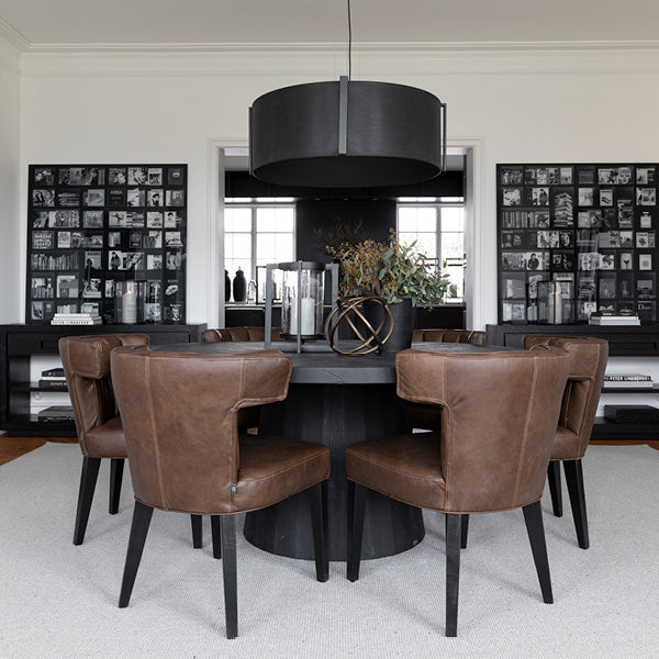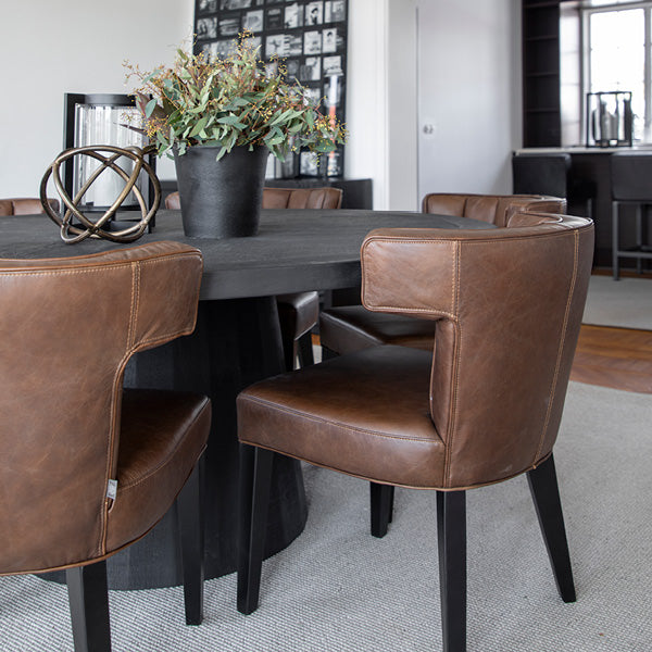 Baldwin matstol från Artwood är en elegant och stilren stol som kombinerar högkvalitativt skinn i färgen Chocolate brown med noggrant utformade detaljer. Stolen är designad med dekorativa sömmar på ryggstödet, vilket ger ett sofistikerat och exklusivt uttryck. De svarta träbenen tillför en modern och stabil grund som passar perfekt i både samtida och klassiska miljöer. Med sin ergonomiska design erbjuder Baldwin inte bara ett estetiskt tillskott till din matplats utan även hög komfort för långa middagar och trevliga stunder runt bordet. Det slitstarka skinnet är både elegant och lätt att underhålla, vilket gör stolen till ett praktiskt val för vardag och fest.
