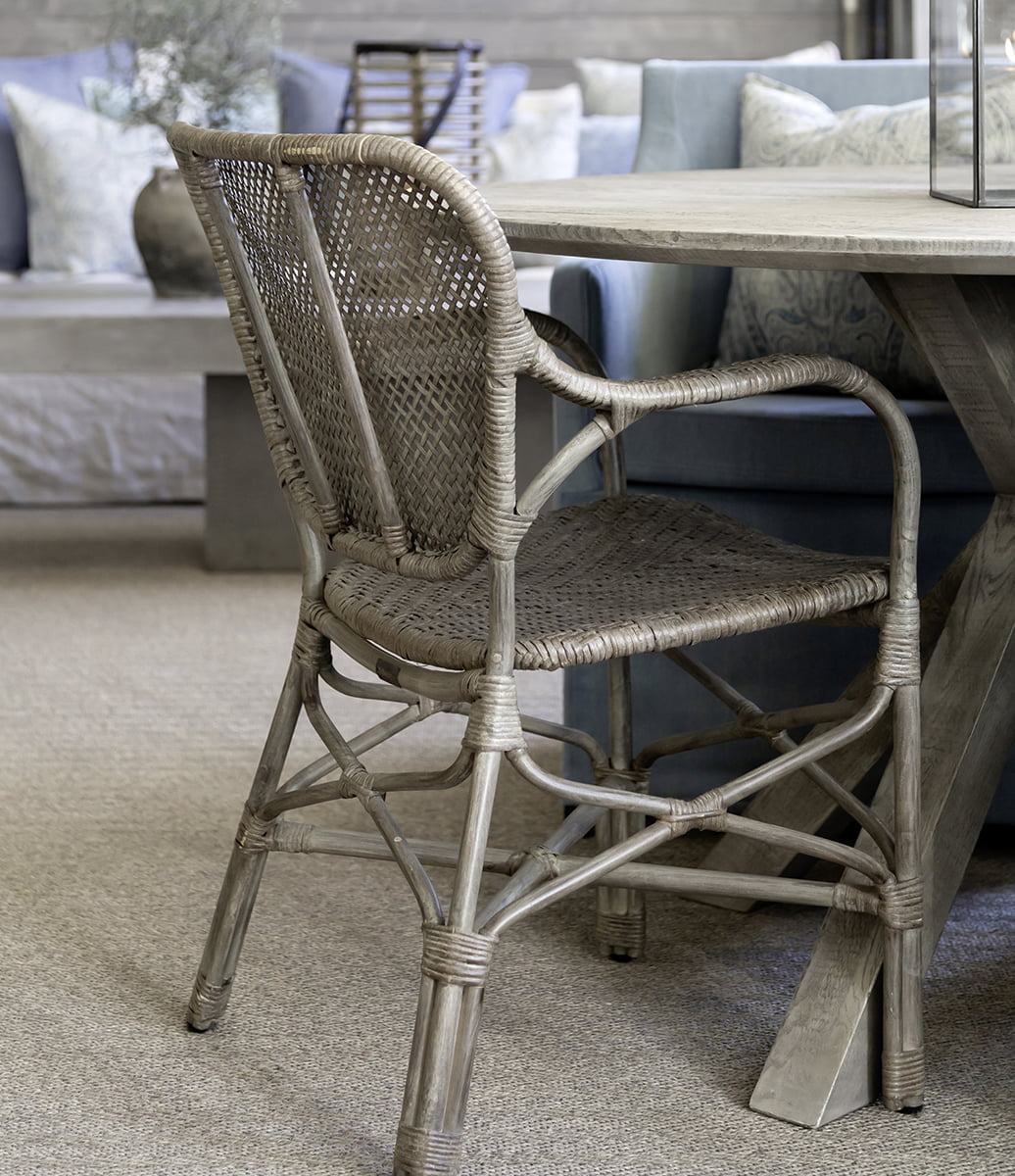 Bistro rottingstol från Artwood med armstöd kombinerar naturliga material i färgen Antique Grey med stilren design för att skapa en möbel som är både funktionell och estetisk. Rottingen ger stolen en varm och inbjudande känsla, medan de välplacerade armstöden erbjuder extra komfort. Perfekt för både inomhus- och uterum, fungerar stolen lika bra runt matbordet som i loungen eller på uteplatsen. Den tidlösa designen gör den enkel att kombinera med olika inredningsstilar, från modern minimalism till bohemisk charm.
