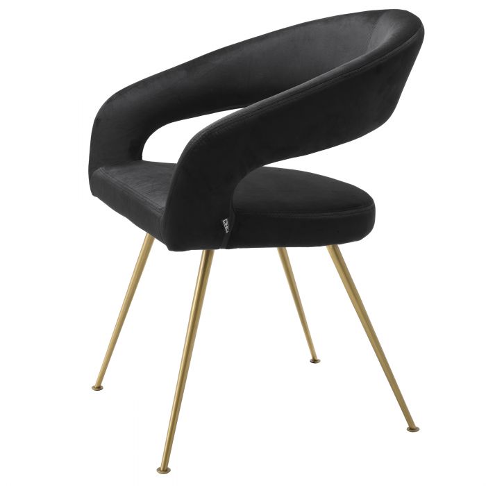 Lägg till karaktär till din matsal med Bravo Dining Chair. Kombinera elegansen från 50-talsmöbler med modern design. Den härliga klädseln i svart sammet ger denna stol en inbjudande känsla, medan de avsmalnande benen i borstad mässingsfinish ger ditt hem en modern och lyxig look.