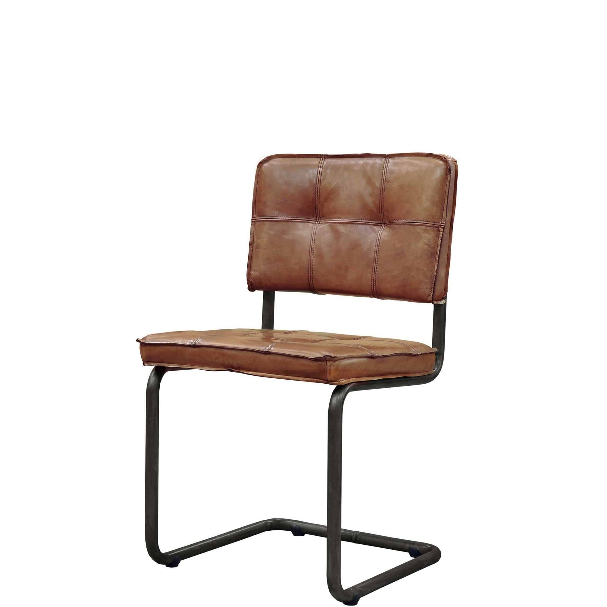 En mycket härlig och underbar matstol med rejäl känsla av retro/vintage fast i modern tappning. Fint buffelläder och och ställning i metall som ger en härlig mix av “hårt och mjukt”.