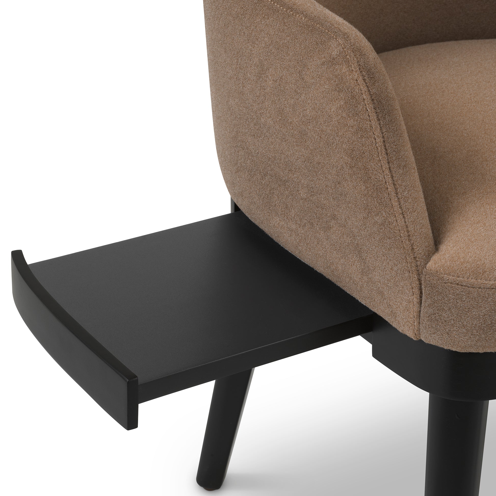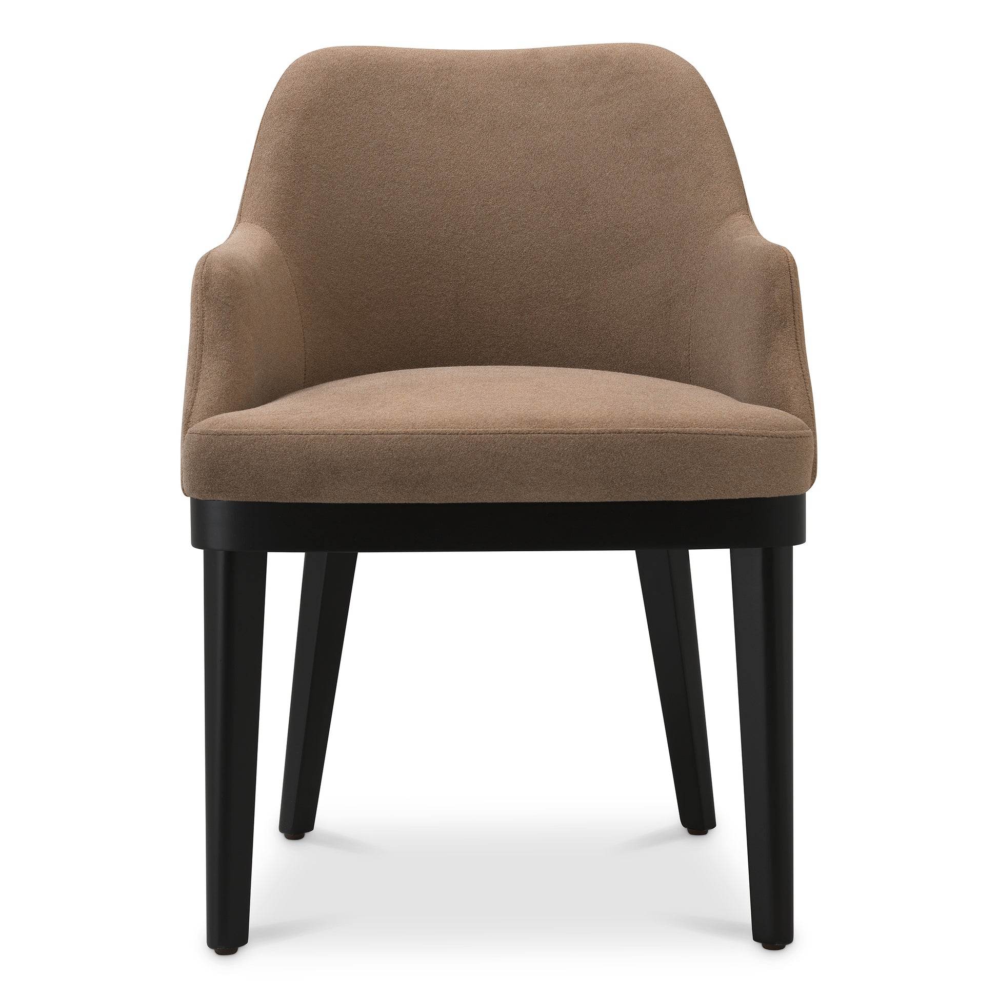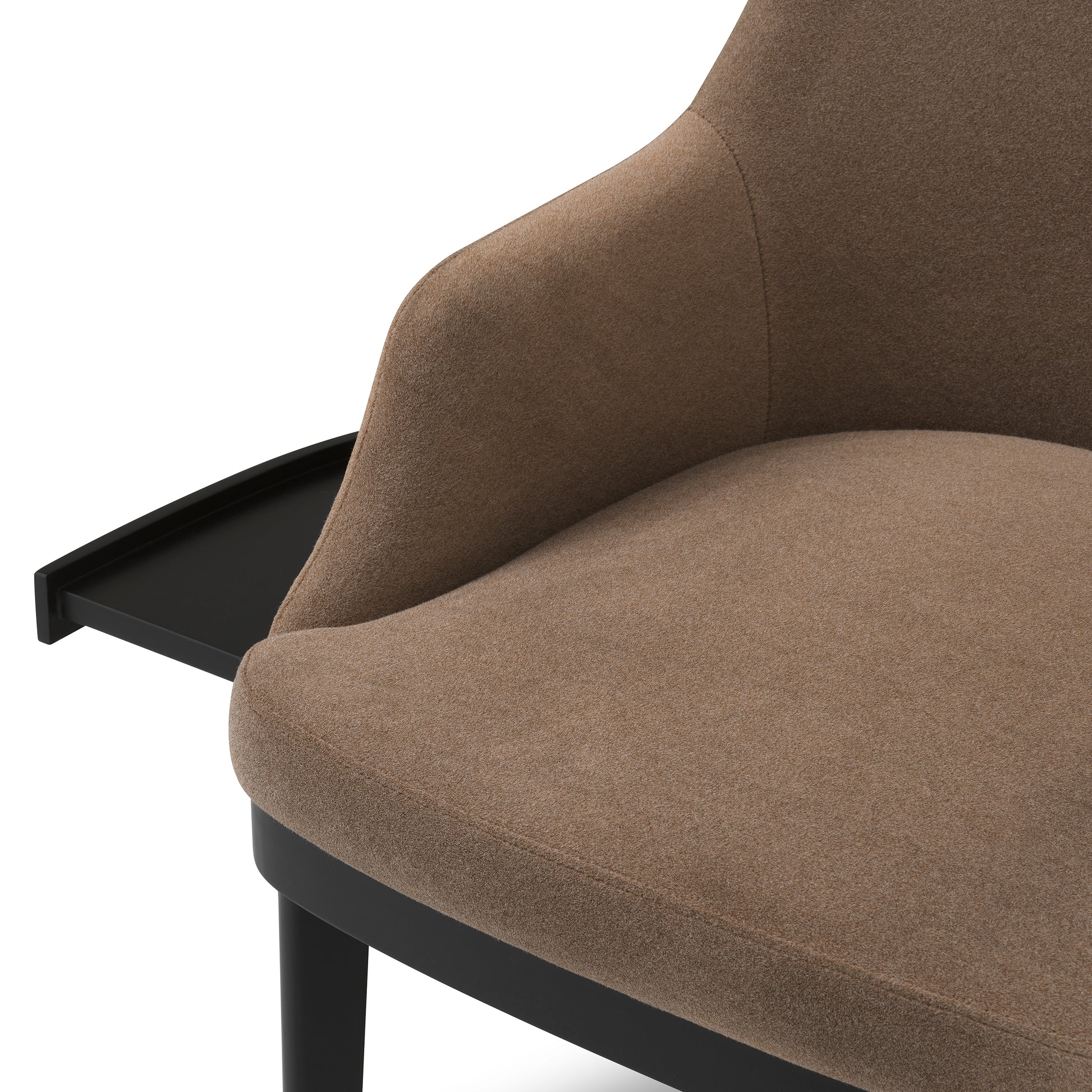 Matstolen Costa från Eichholtz i Sabino Brown kombinerar funktionalitet med elegans. Under det mjuka Sabino-tyget finns en subtilt integrerad hylla, perfekt för att förvara en väska eller personlig ägodel nära till hands. De stilfulla svarta benen ger stolen en balanserad, skulptural form där sofistikerad komfort möter genomtänkt design.